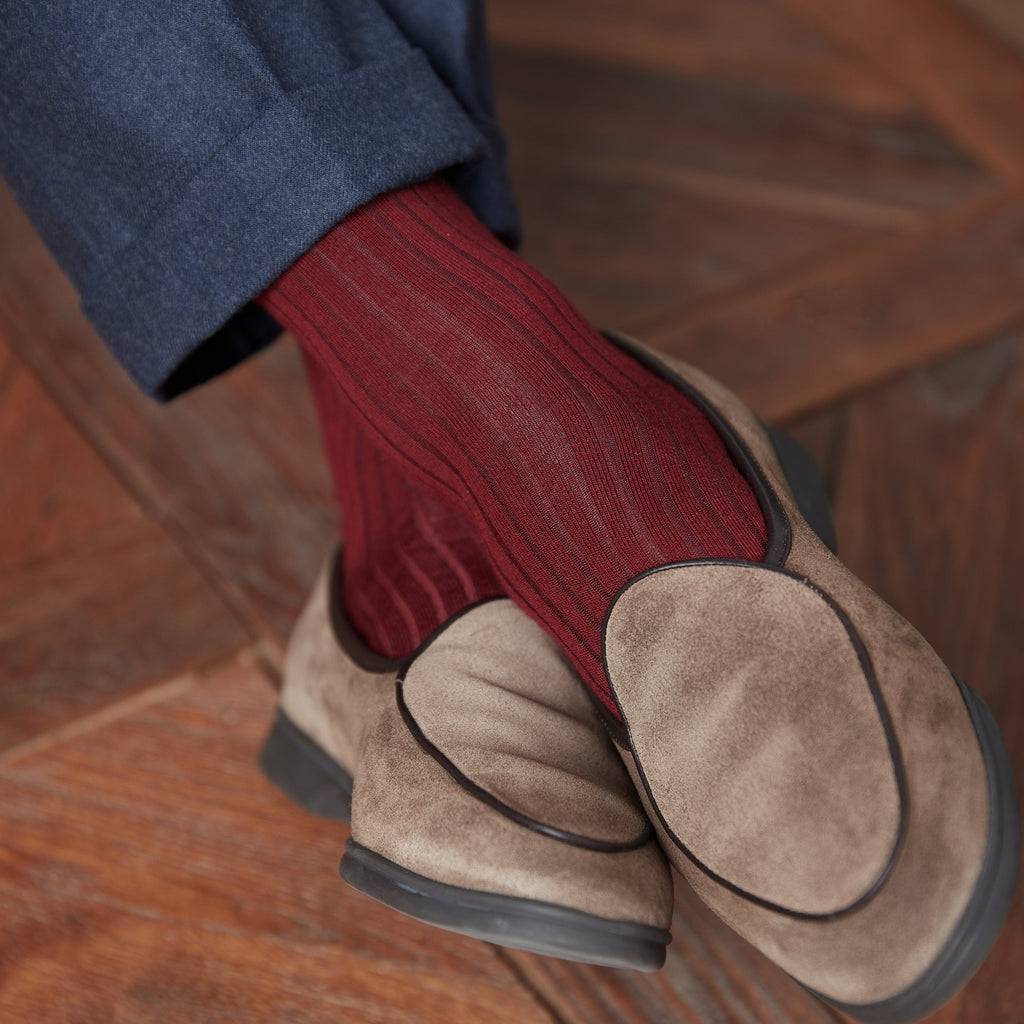 Si vous faites partie de ceux pour qui chaussettes de qualité rime avec solidité, vous ne serez pas déçu. Découvrez la gamme Super-solide de Mazarin à travers ces sept paires ultra résistantes en fil d'Écosse ou en laine. La robustesse de ces modèles a été testée et approuvée par le test d’usure Martindale. À une importante proportion de matières naturelles (coton ou laine), nous avons choisi d'associer polyamide et élasthanne, respectivement sélectionnés pour l'excellente résistance à l'abrasion et le maintien et la souplesse de la chaussette. Cette gamme est à porter au quotidien, chez vous ou au bureau, grâce à son épaisseur et ses côtes qui donnent aux chaussettes une certaine allure.
