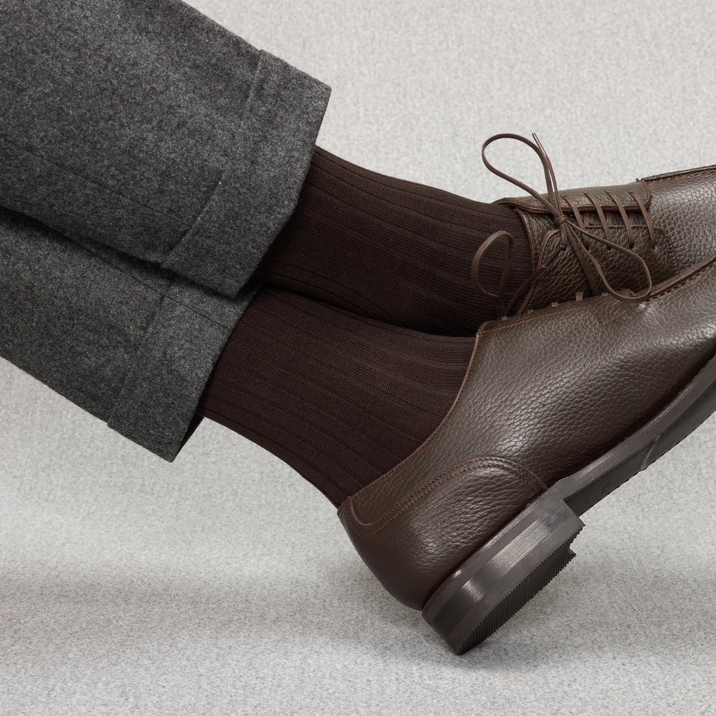 Die Farbe Braun wird oft bei Socken ausgewählt, weil sie leicht zu tragen ist und zu diversen Kleidungsstücken passt.