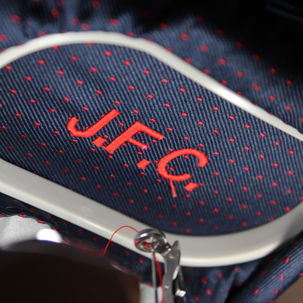 Stickerei : Wir bieten Ihnen die Möglichkeit, den Stoff durch Sticken Ihrer Initialen zu personalisieren. Sie können die Farbe und die drei Zeichen für die Initialen wählen.