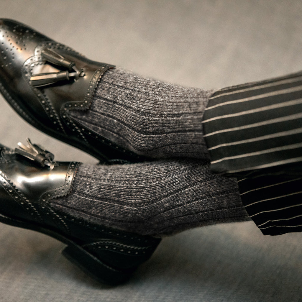 These ribbed socks from the French brand Mazarin are made in the best workshops in Italy and are reinforced at the heel and toe. For the size 36-39, the elastic is decorated with a golden border.