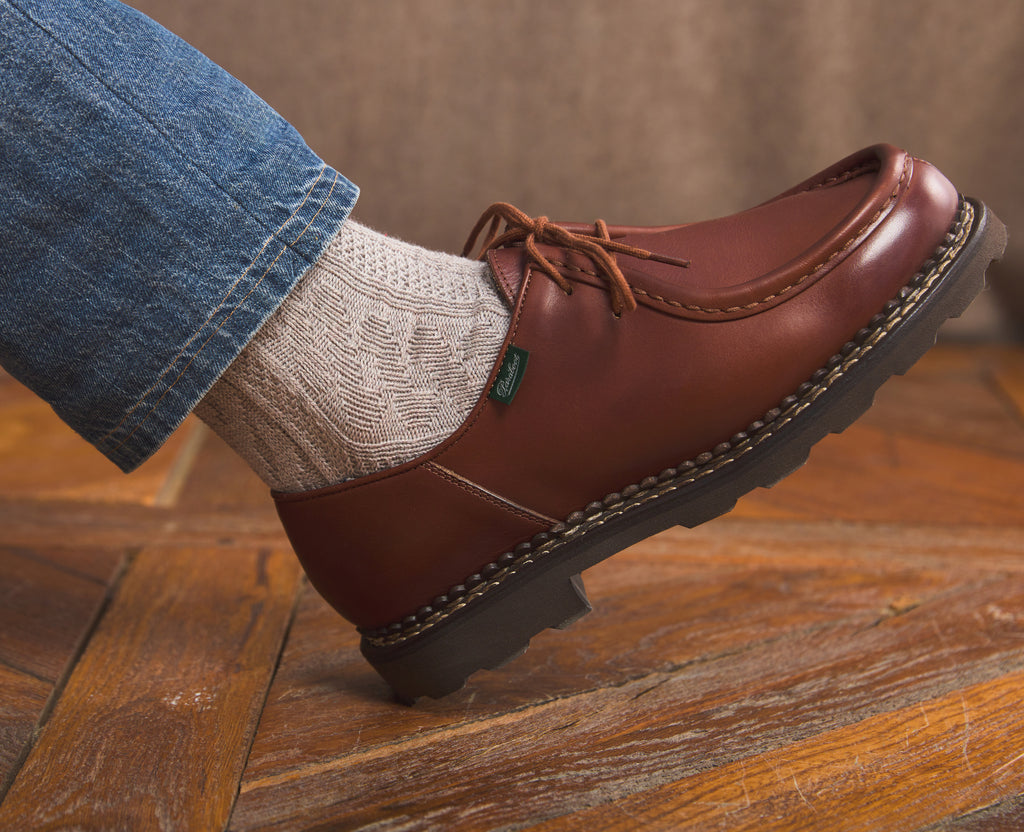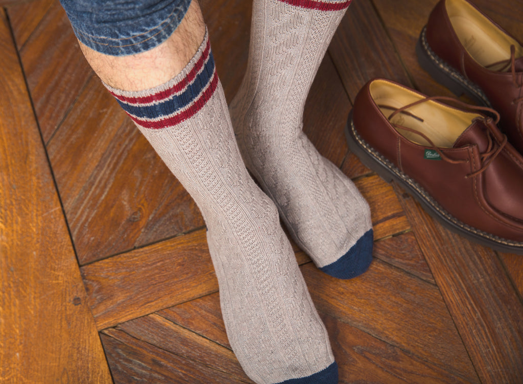 These socks are knitted in Italy and re-knitted stitch by stitch for a seamless finish.