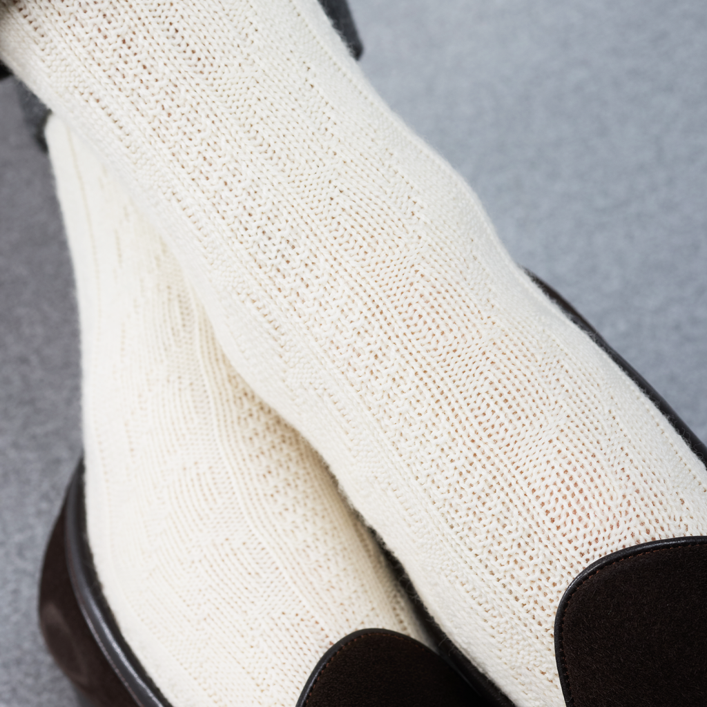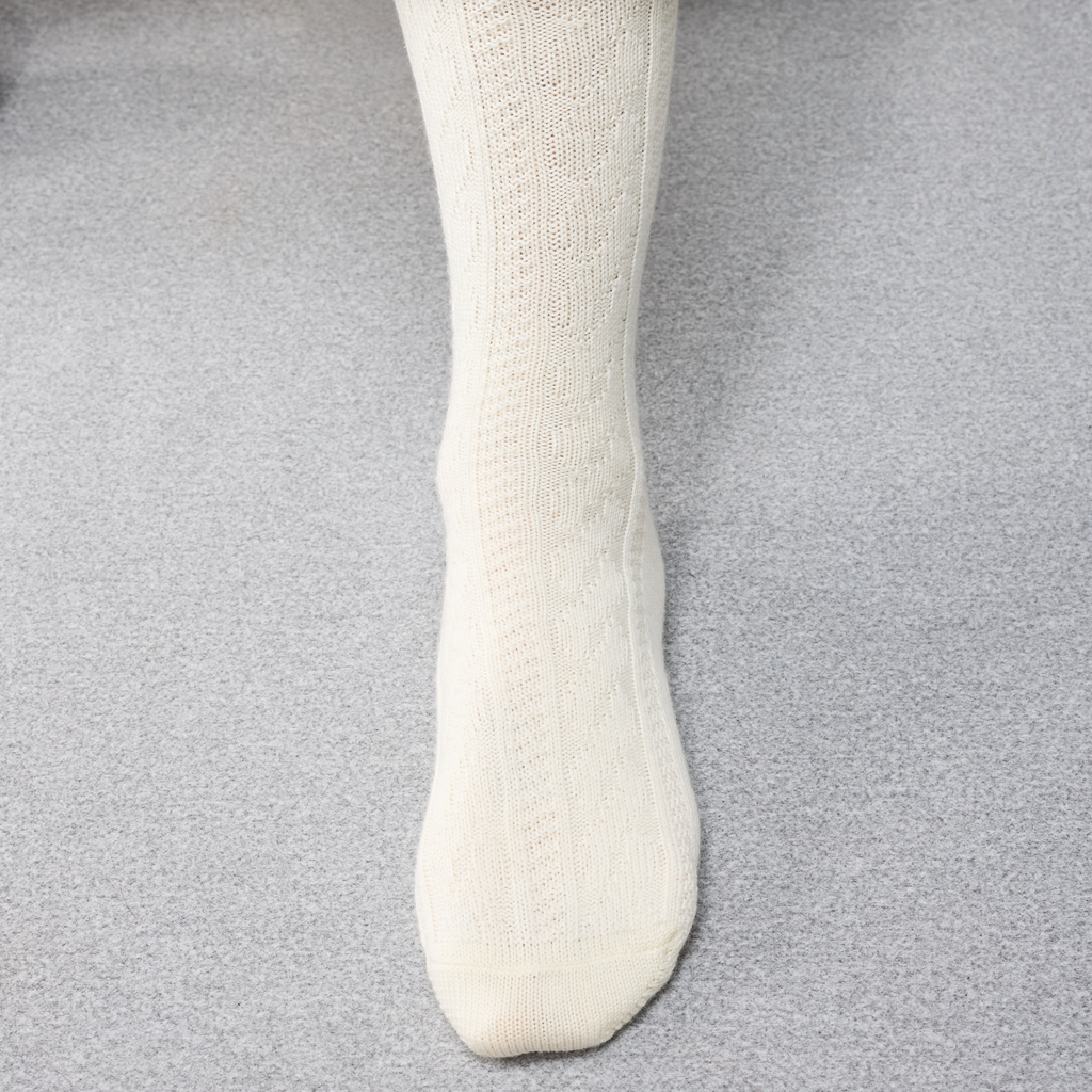 Chaussettes mi-mollet en laine épaisse de la gamme Super-solide, décorées d'un motif texturé de torsades blanc crème.