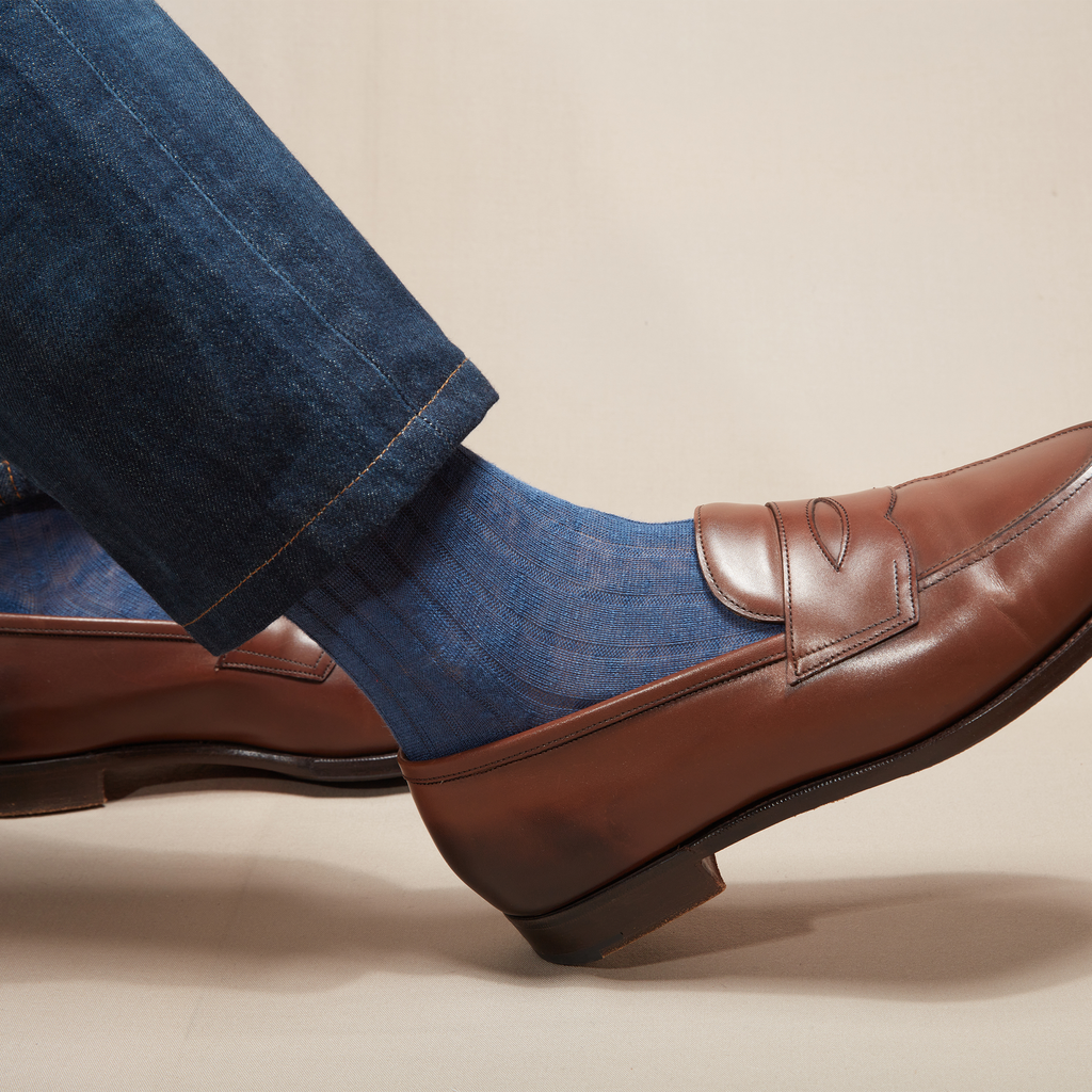 This magnificent denim blue will bring a splash of colour to your outfits, whether they’re formal or informal! Match them with beige, grey or even blue trousers if you like a bold two-tone look. The more you contrast the colour of your socks with the colour of your trousers or shoes, the more you’ll turn heads with this colourful detail!