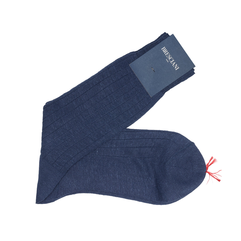 These mid-calf Bresciani socks combine a beautiful denim blue colour with the remarkable fabric that is linen.