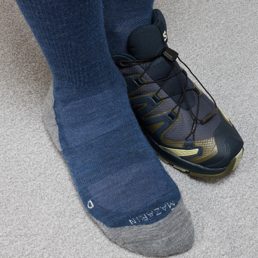 Mazarin has created these beautiful and comfortable hiking socks in blue & grey to satisfy all your needs!
