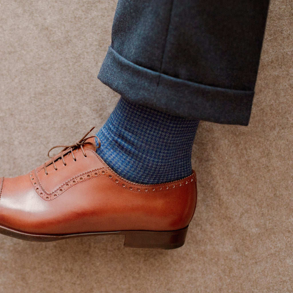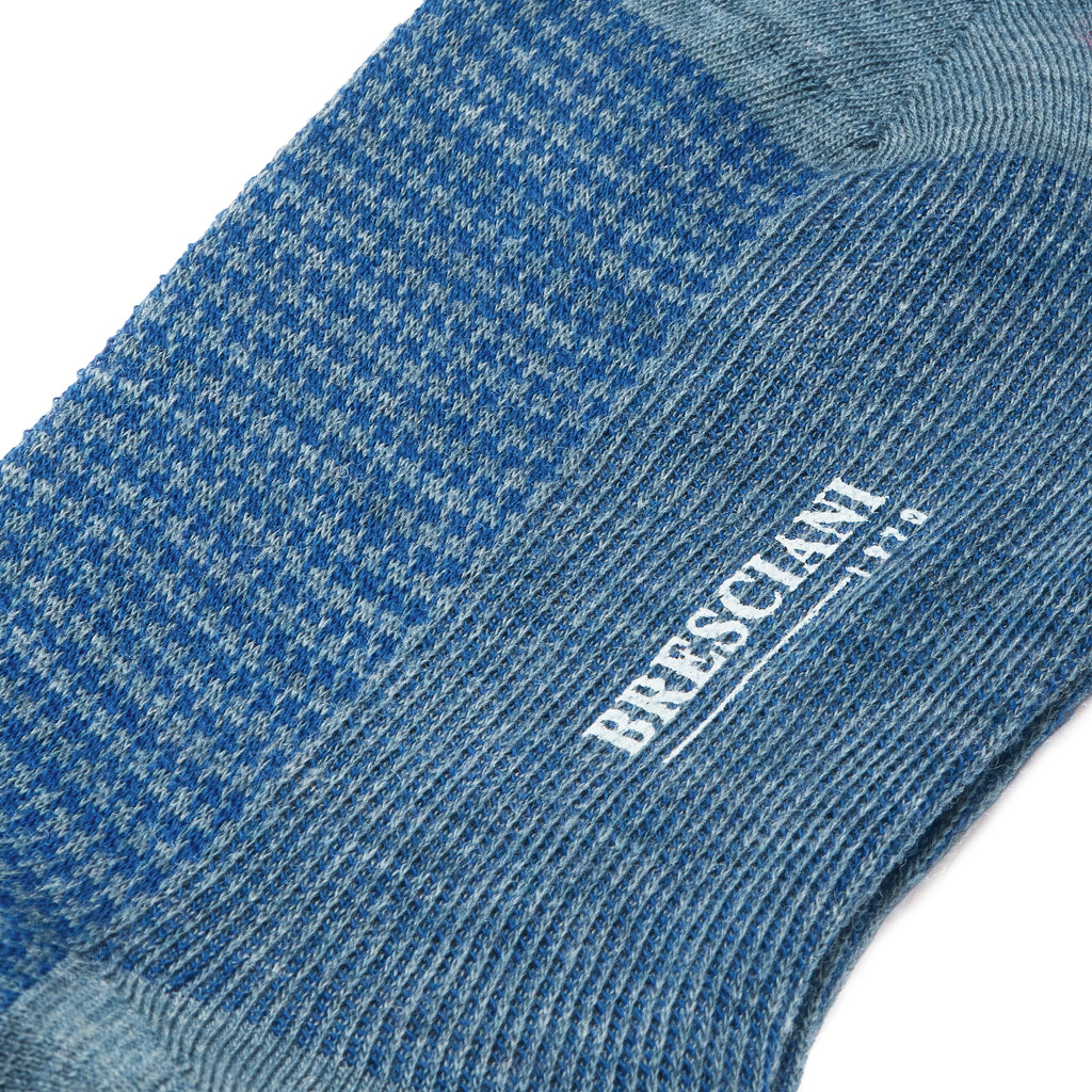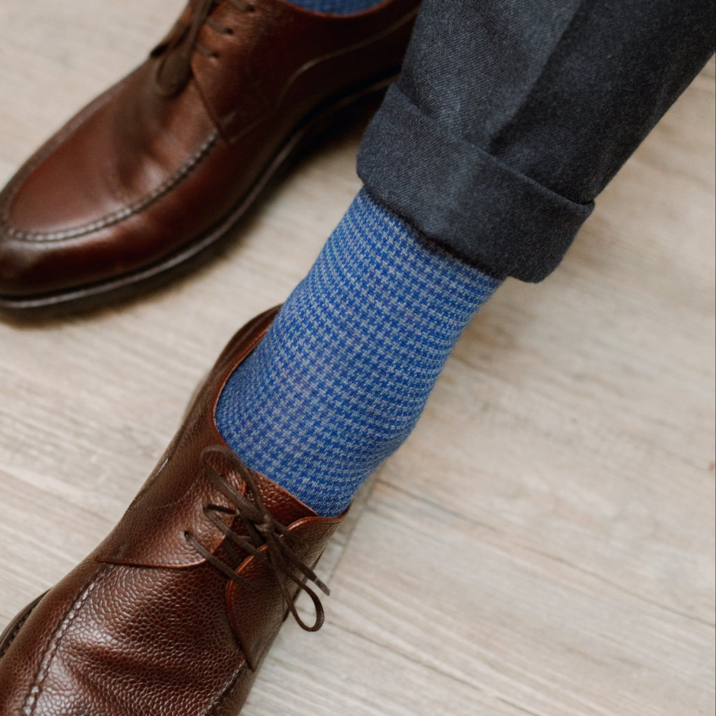 Knee-high fine socks from Bresciani with a houndstooth pattern in royal blue & grey.