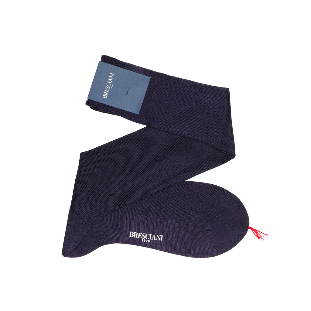 This pair of knee-high socks are a good compromise between boldness and classic elegance. A distinguished colour that reminds us of both blue and aubergine. This tone is less classic than black, but just as safe and elegant. The honeycomb pattern adds a hidden touch of creativity to the socks and, therefore, to the outfit.