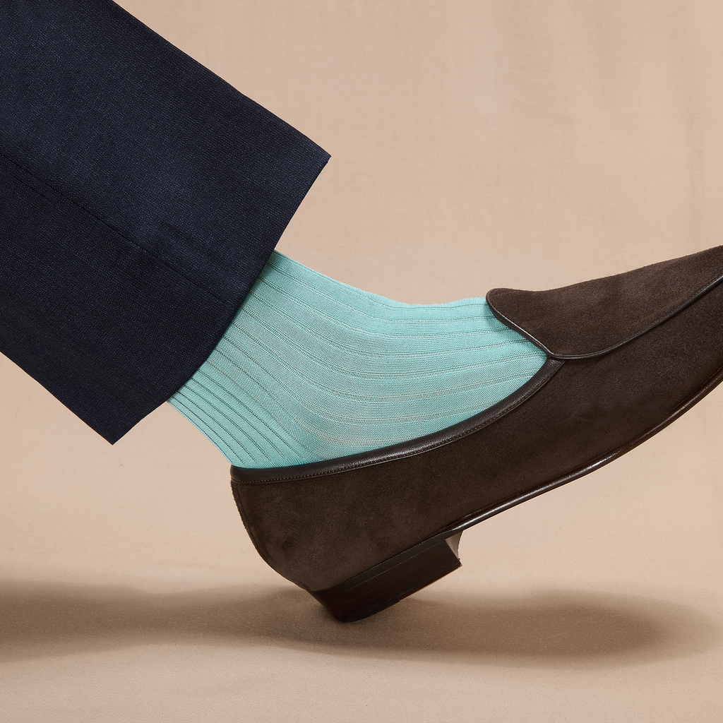 Gammarelli presents this vivid pair of turquoise knee-high socks in pure lisle cotton!