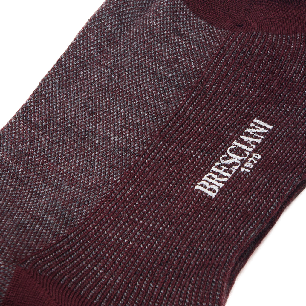 Discover Brisciani's woollen socks with a birdseye pattern that combines burgundy with steel grey, a very special colour that has a blue sheen to it. These socks can be worn with all your outfits in grey or blue shades.