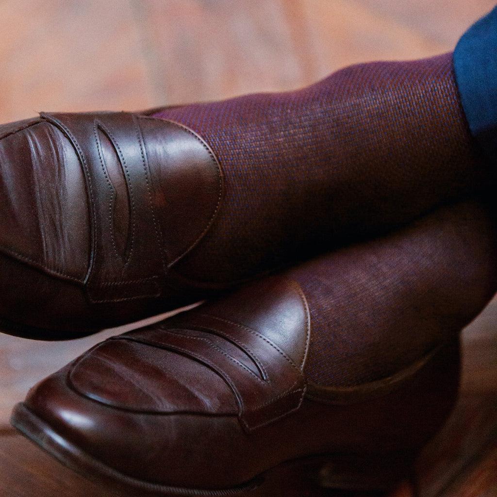 Burgundy & Blue - Birdseye - Cotton Lisle