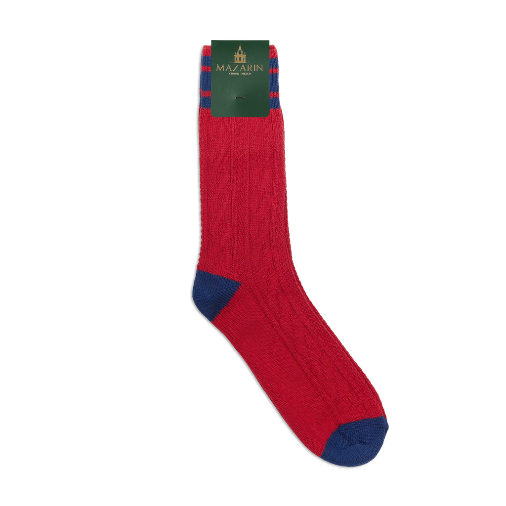 Mazarin's short cotton socks with cable pattern in brick red and royal blue are a perfect accessory to complete a casual outfit. Pair them with sneakers in a casual style, or casual leather shoes. The cable pattern brings relief, and the combination of brick red and royal blue colors gives dynamism to your outfit.