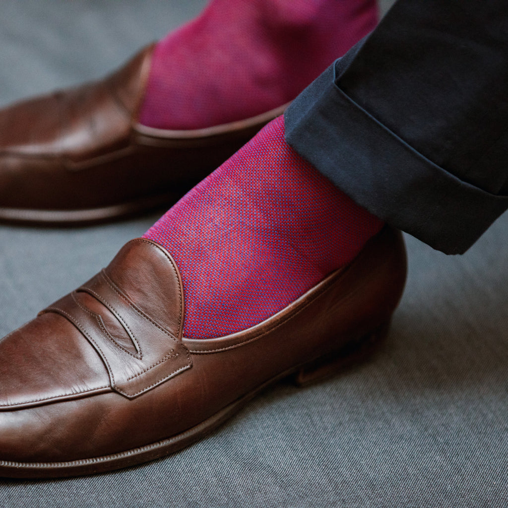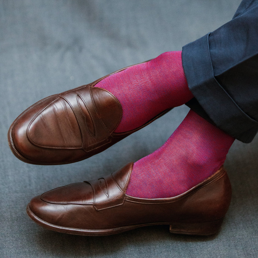 But the highlight of these socks isn't just their colour or pattern, but the high quality of the materials and techniques used. Made in 100% cotton lisle, they are reinforced at the toe and heel and remeshed stitch by stitch.