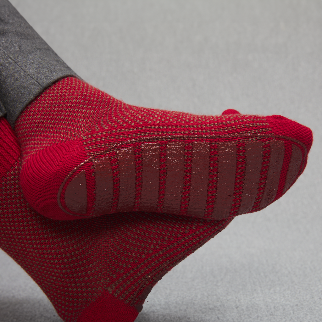 Introducing Mazarin's famous woollen Moonwalk Indoors Socks, here in a Red & Taupe birdseye pattern!