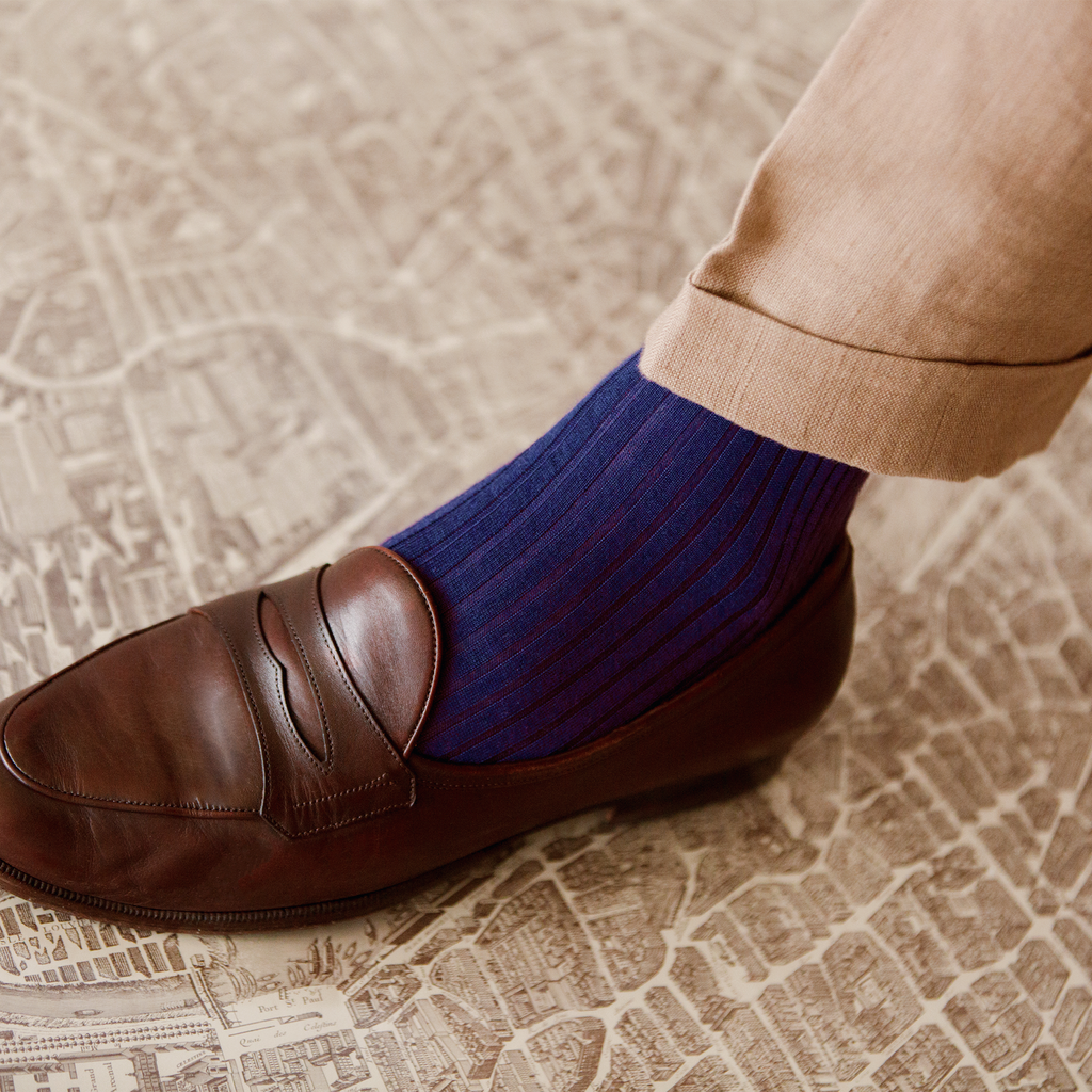 The thinness and materials used in these aubergine-coloured socks (70% cashmere & 30% silk) contribute to their softness and warmth. This pair is perfect for a colourful outfit worn on cooler days. They will add a touch of warmth and originality to your outfit.