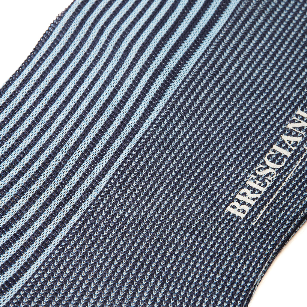 Bresciani presents this beautiful pair of knee-high socks with a deckchair stripes pattern combining ink blue and sky blue. The delicate contrast between these two shades will add a fun element to your outfit, as well as a touch of colour!