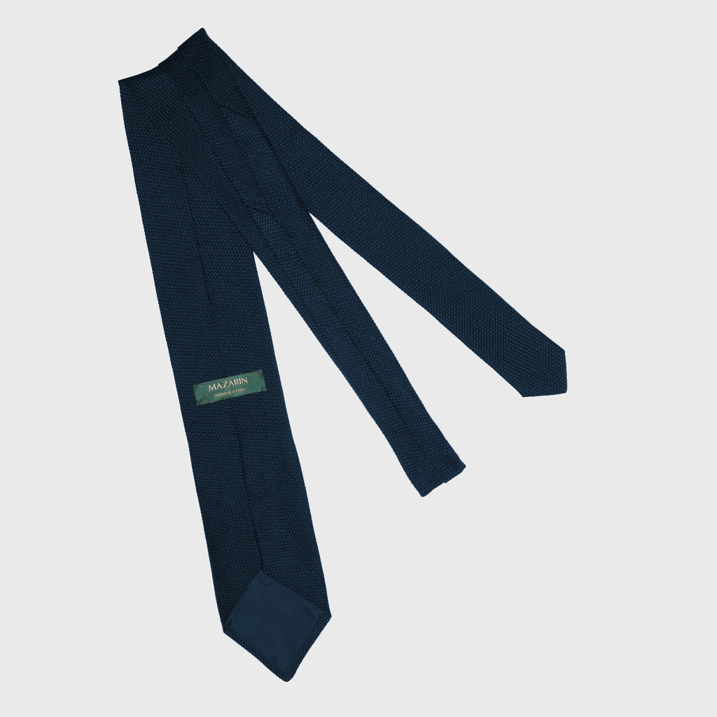 This midnight blue pure silk tie is understated and ideal for formal wear. The interlining gives this three-fold tie a beautiful drape and good flexibility.