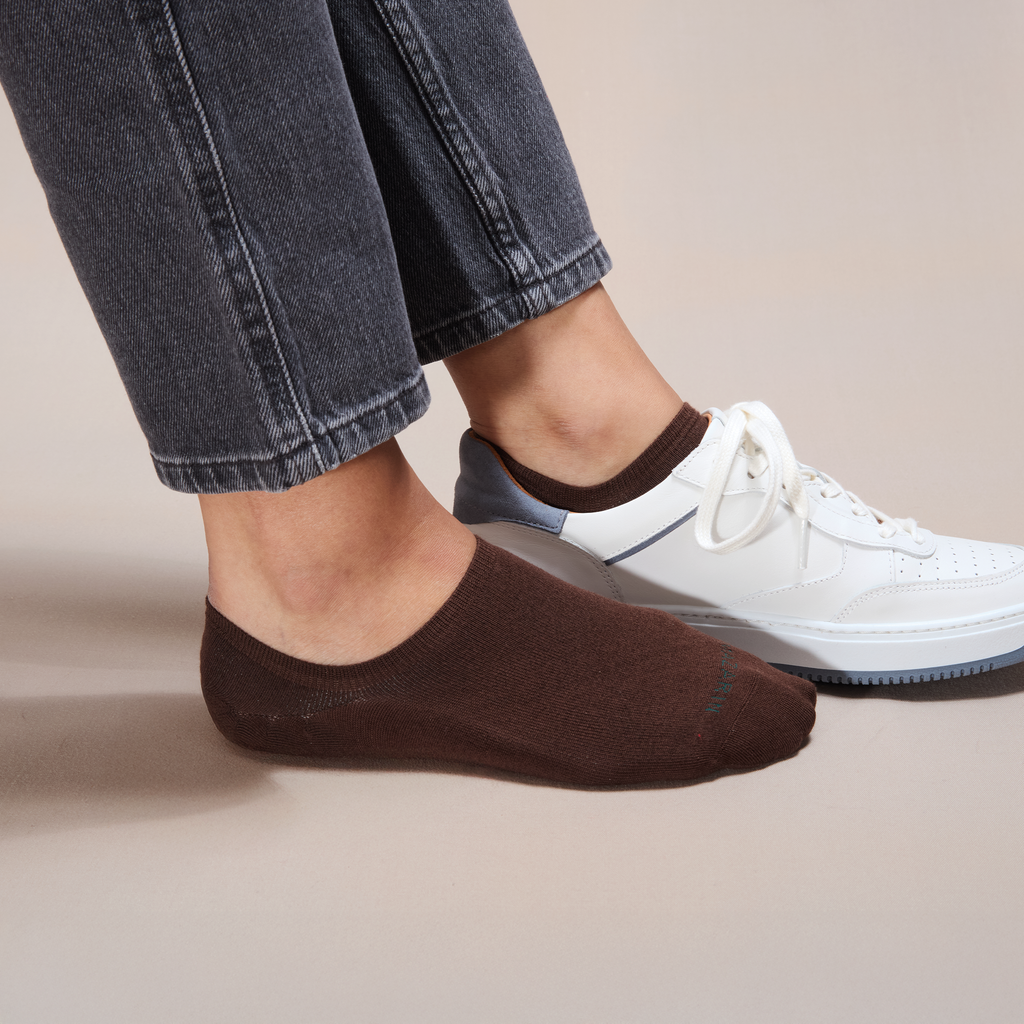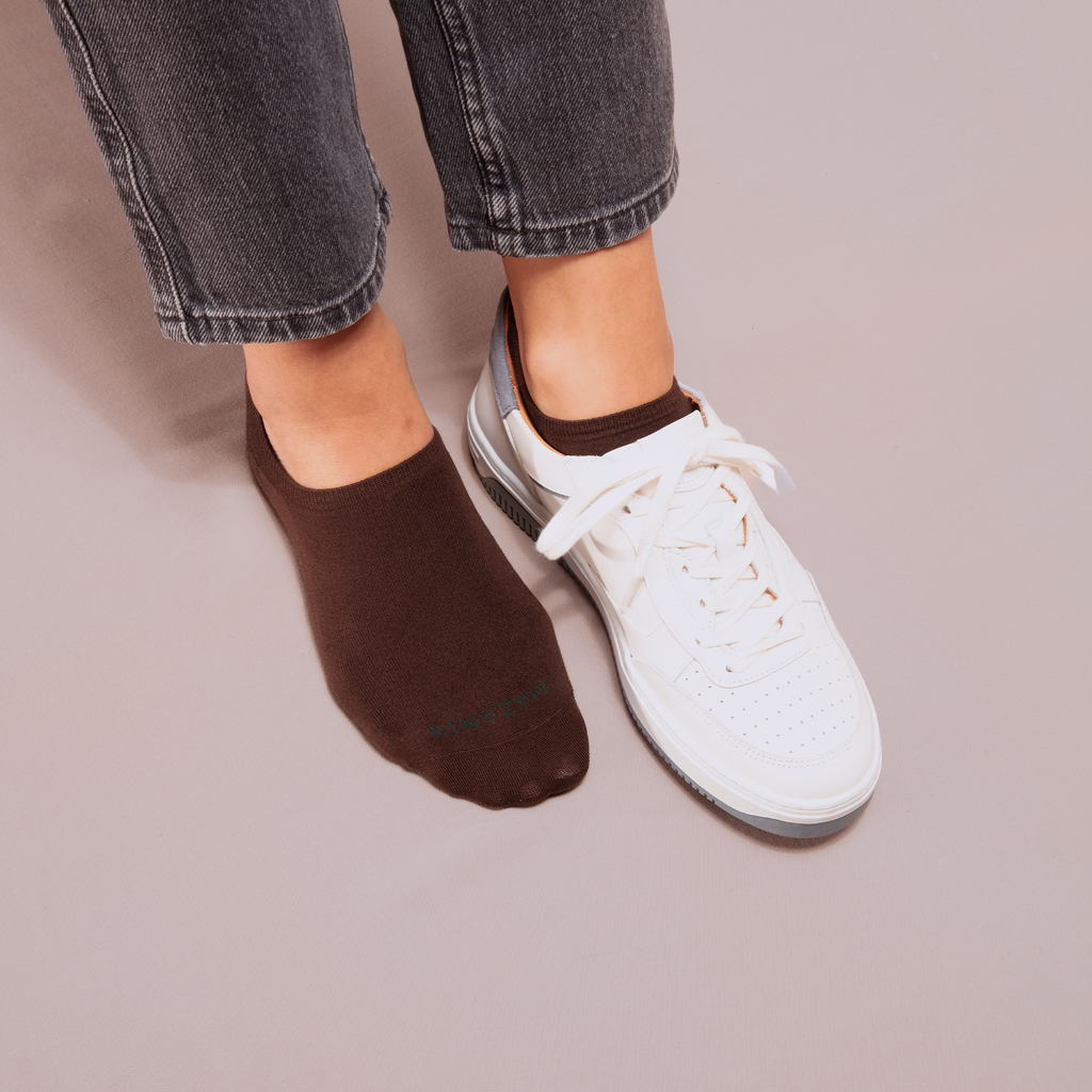 Invisible cotton sneaker socks for women in Havana brown, by Mazarin.