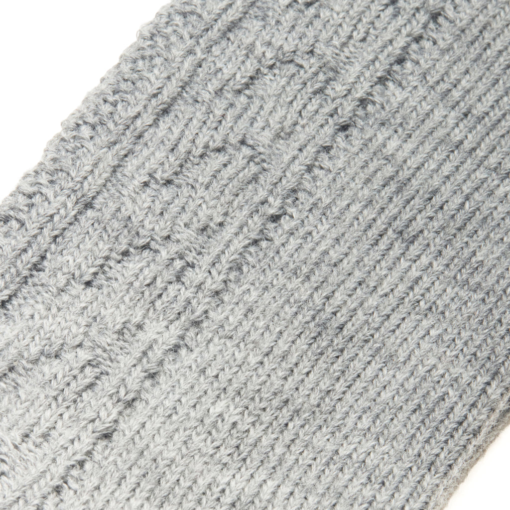 Mid-calf socks in thick wool from the Super-Strong range, featuring a textured cable knit pattern in light grey.