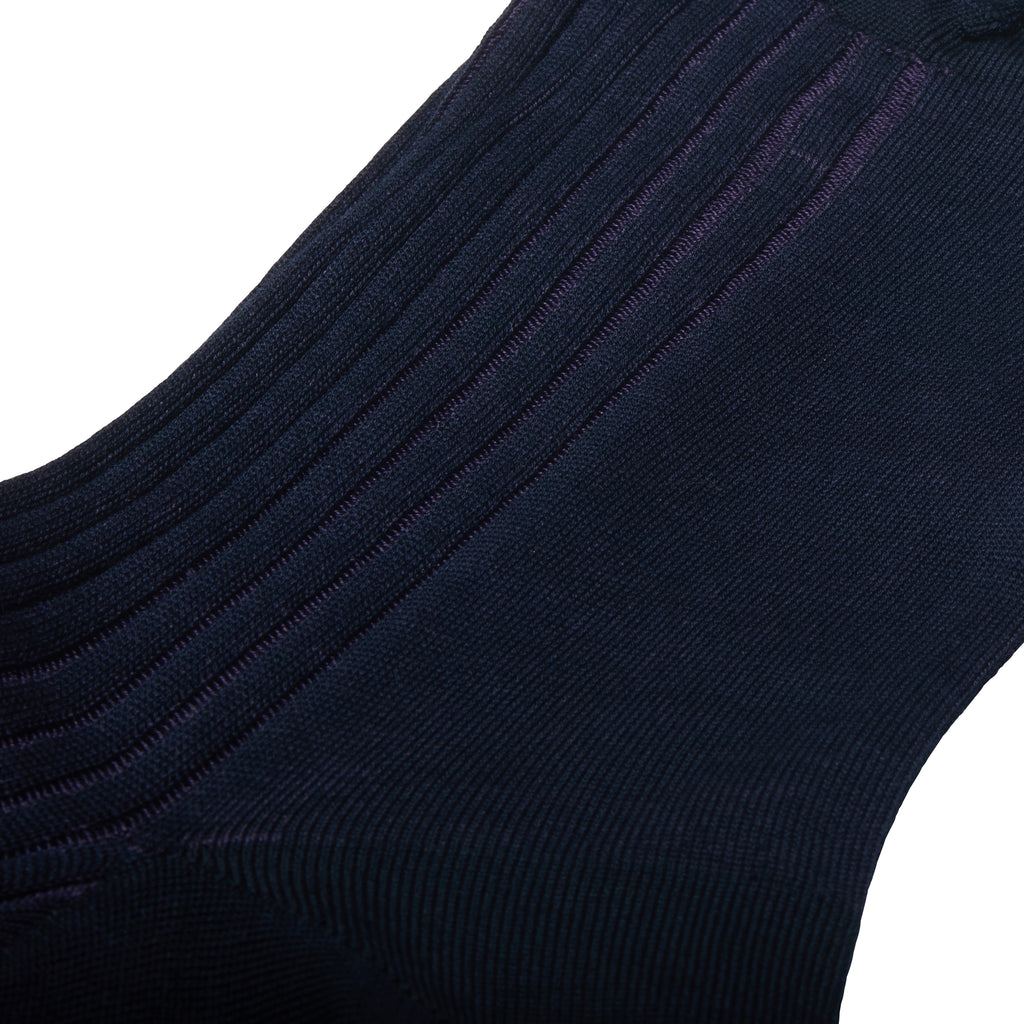 Take a look at this beautiful pair of knee-high socks combining navy blue and violet! Made out of cotton lisle, they are comfortable and light, perfect to wear all year round. Combine them with both formal and casual outfits knowing that you will always look elegant.