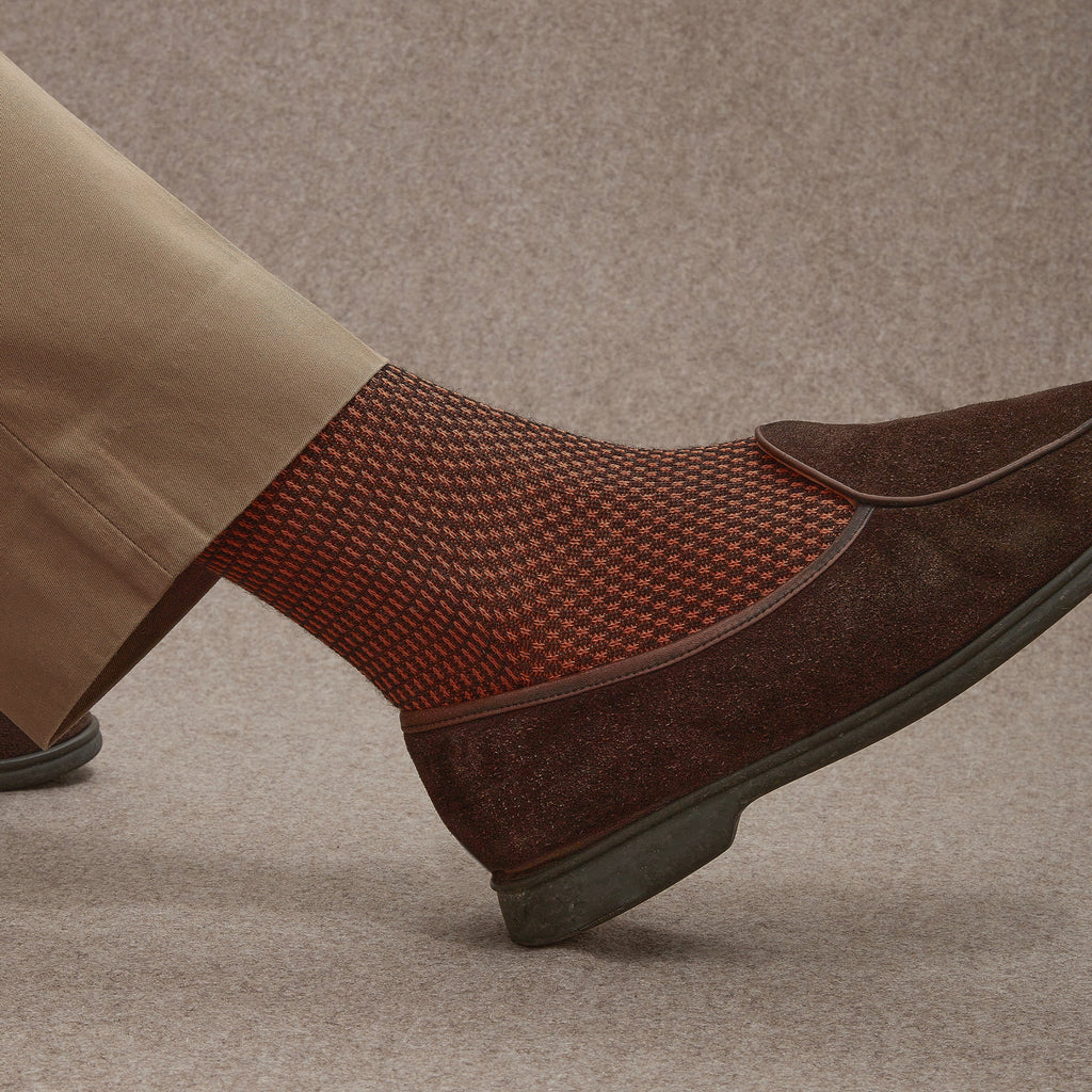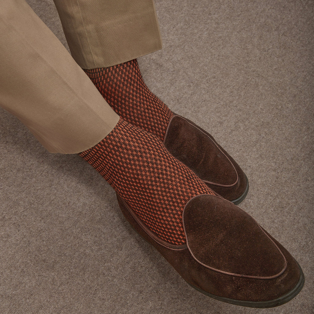 Dark brown & orange - Caviar - Wool and Cotton lisle