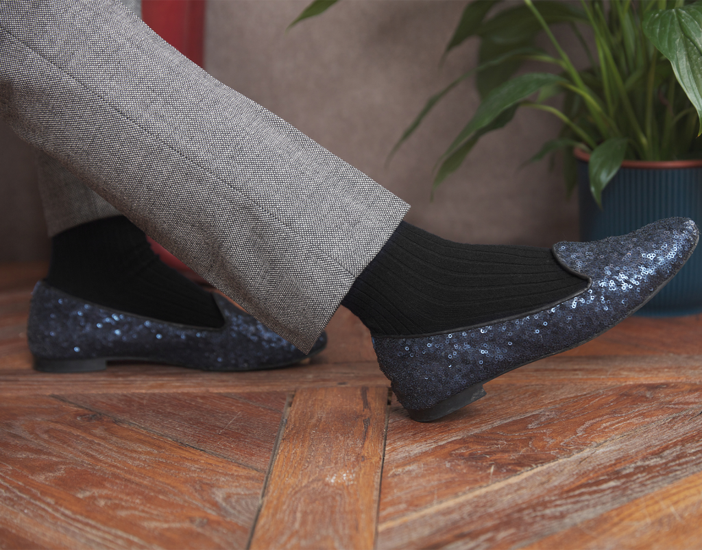 The sobriety of the black color allows you to combine these tone-on-tone cashmere socks with a formal outfit.