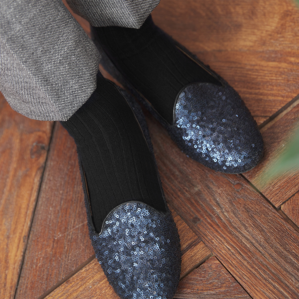 Mid-high black cashmere socks for women, from the Mazarin brand.