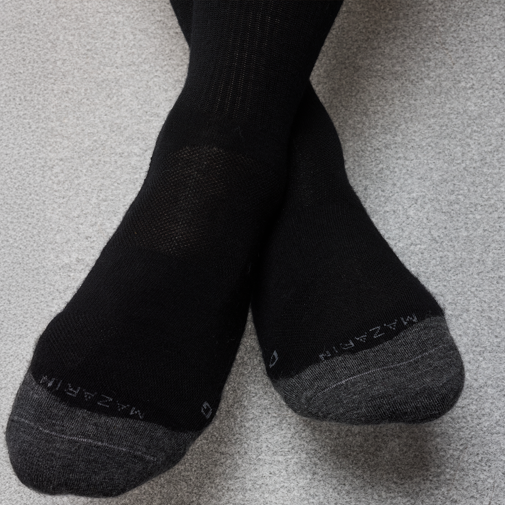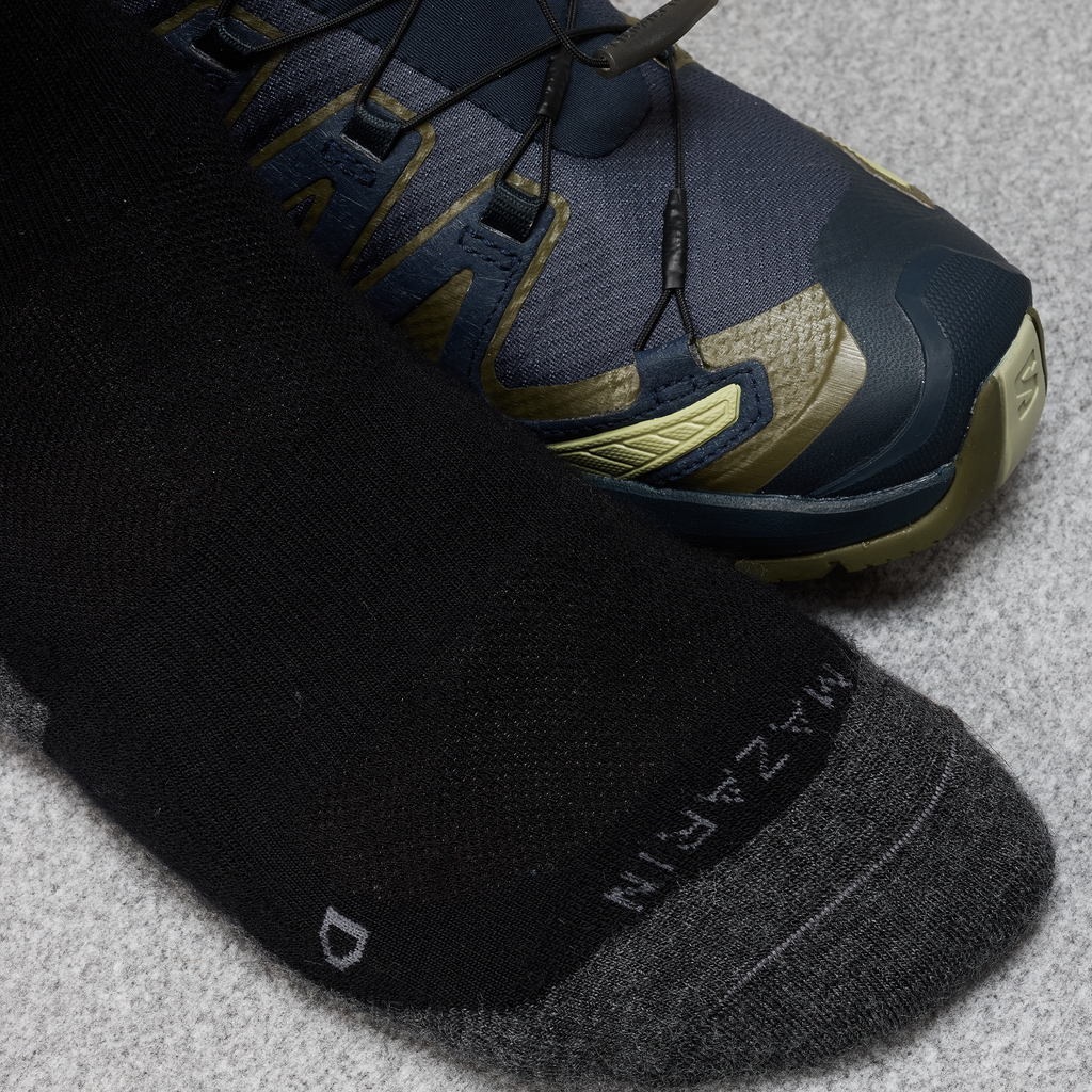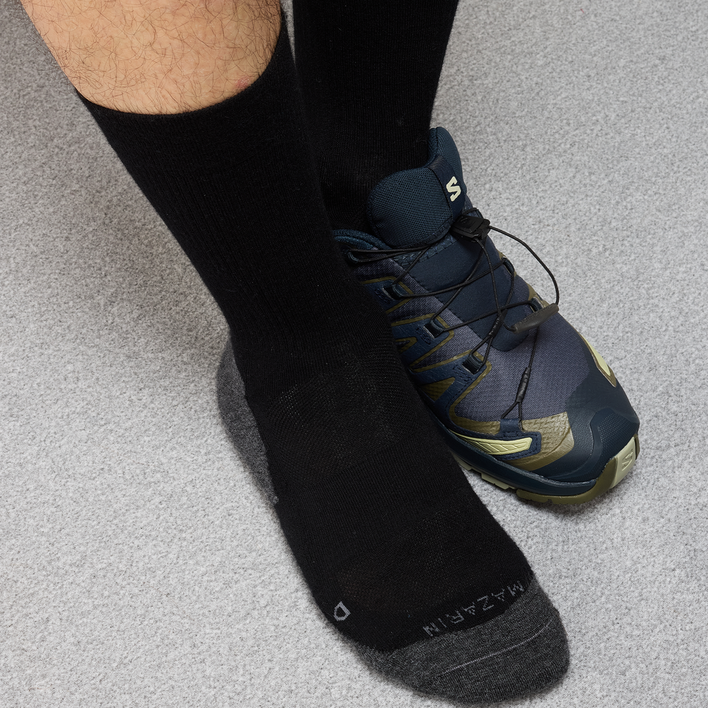 Going for a hike? Take a look at these black & grey woollen socks from the French brand Mazarin!