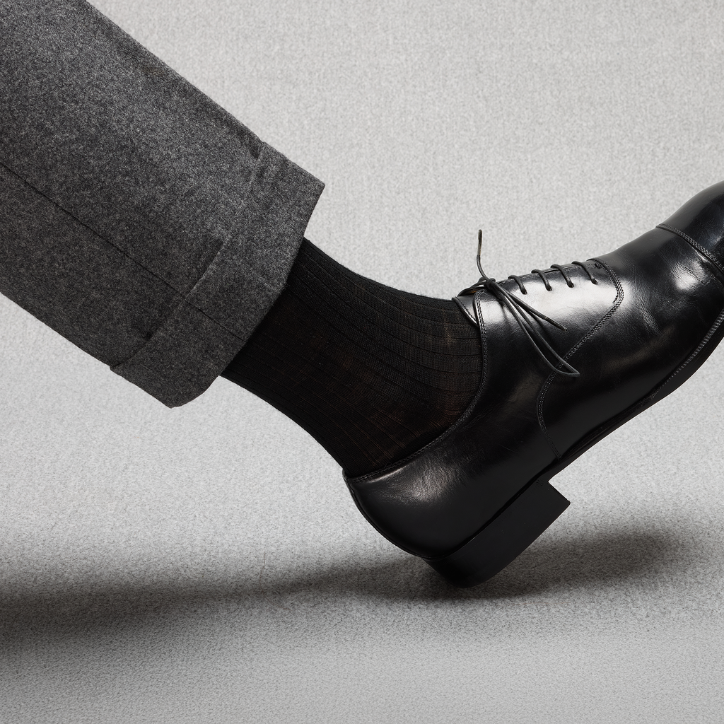 For Gammarelli, the colour black is the colour of the priests. Sombre, elegant and discreet, it is a colour that you can combine with all your outfits without risking a faux pas, whether you are a priest or not! A must-have in your wardrobe that even has a story to tell. Worn tone on tone, black socks elongate the leg. With lighter shades black socks are more visible, they add a certain depth and presence to light-coloured outfits.