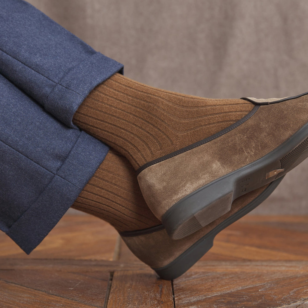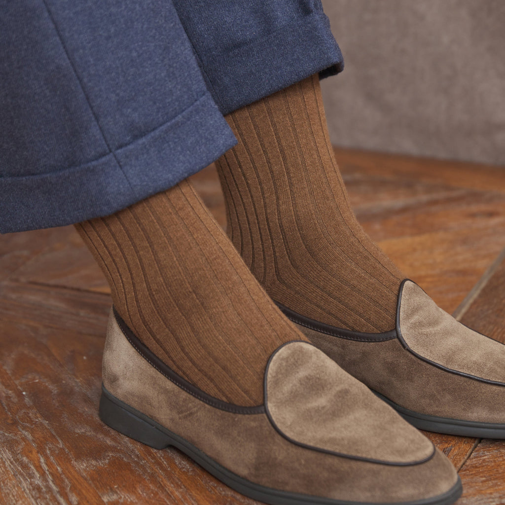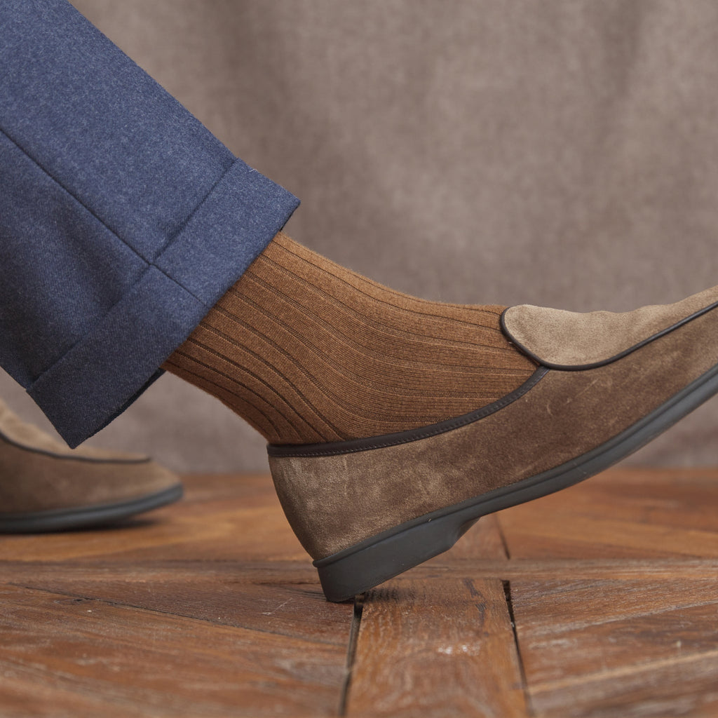 Mid-high hazel brown socks in thick cashmere from the Mazarin brand.