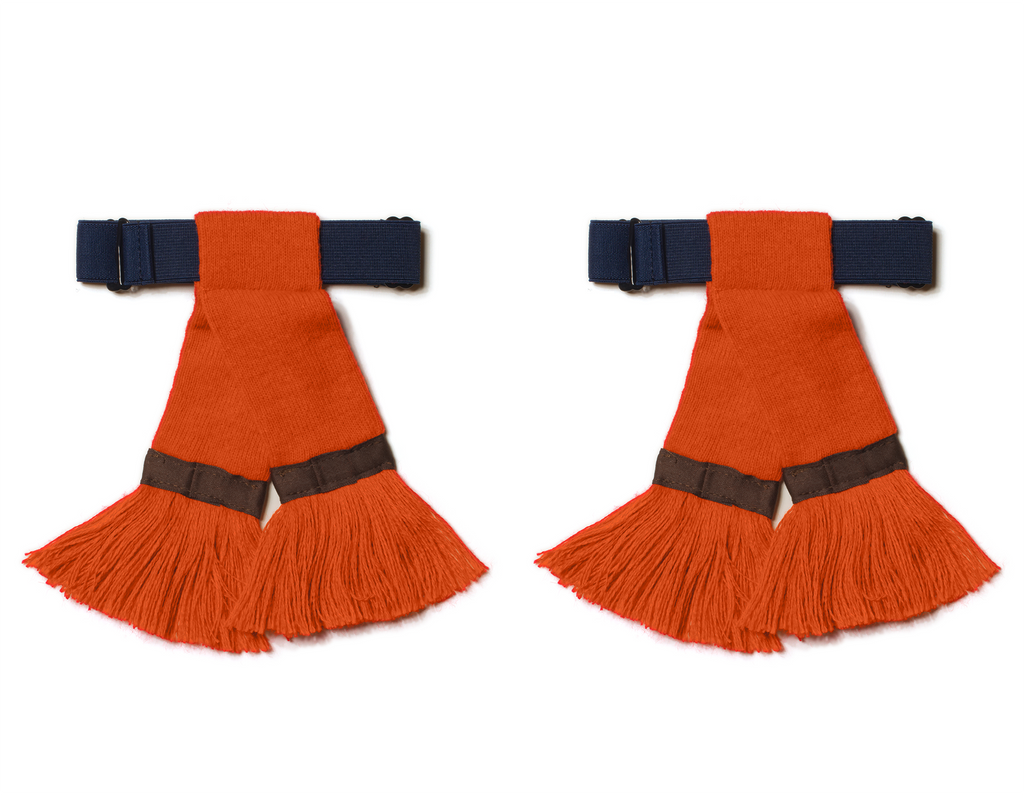 Discover these magnificent orange garters that will brighten up your hunting outfit. These Albert Baucet garters are made in France. They are knitted on an elastic band for ease of use. What's more, they're adjustable, and come with a clip.