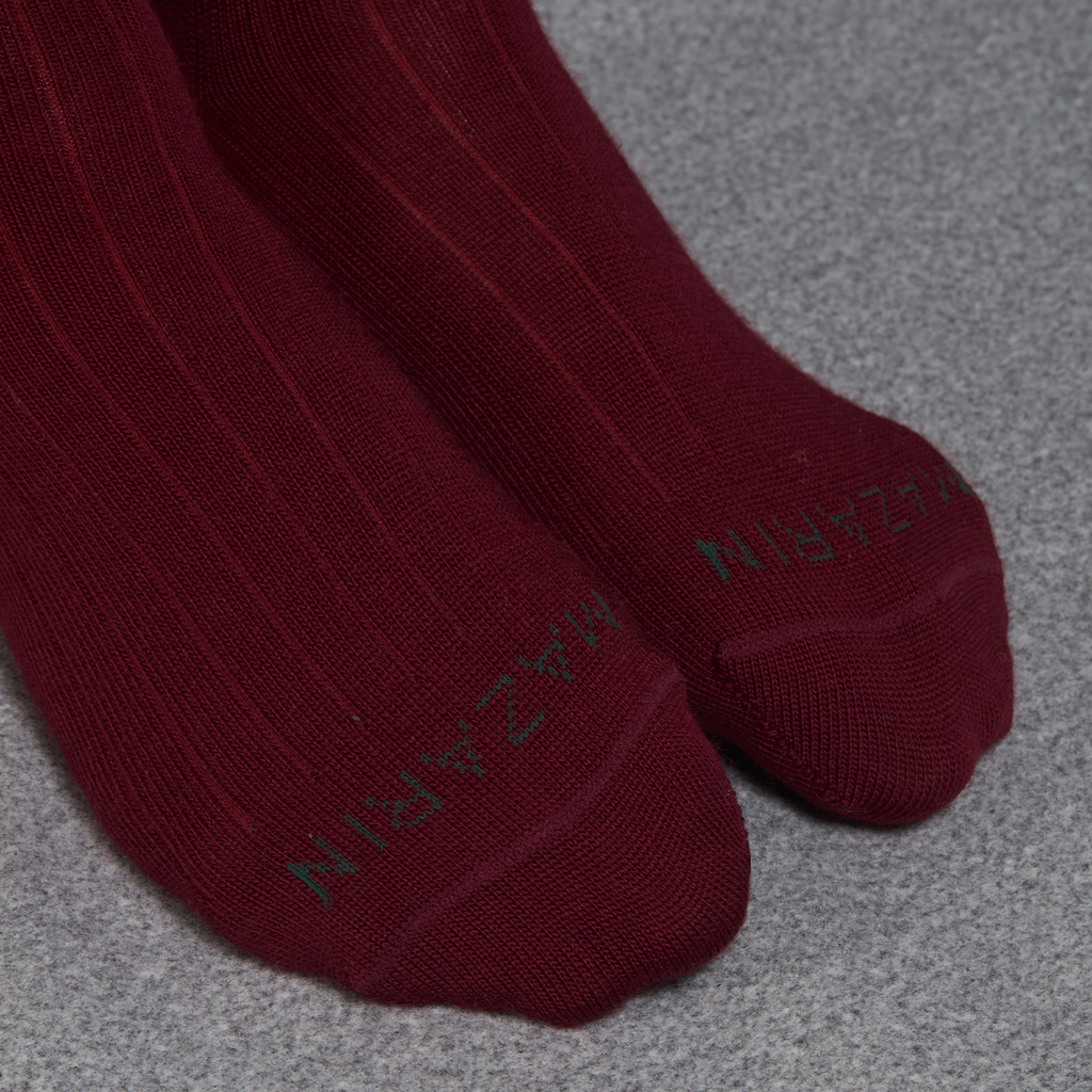 Garnet-red reinforced wool mid-calf socks for children, by Mazarin.
