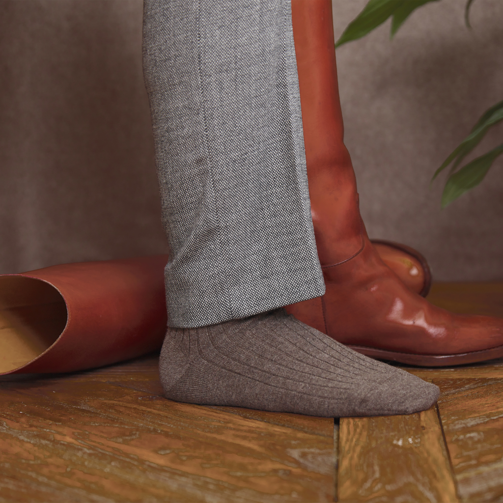The taupe of these socks lies between brown and beige, a sober, neutral yet elegant color. Easy to match, this taupe model goes perfectly with all the colors of your outfits, from the most sober to the brightest.