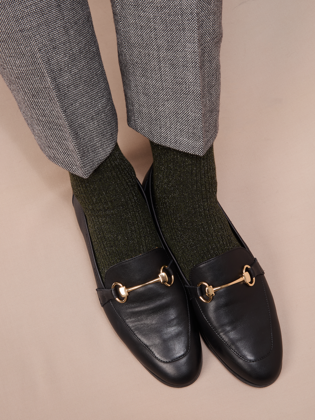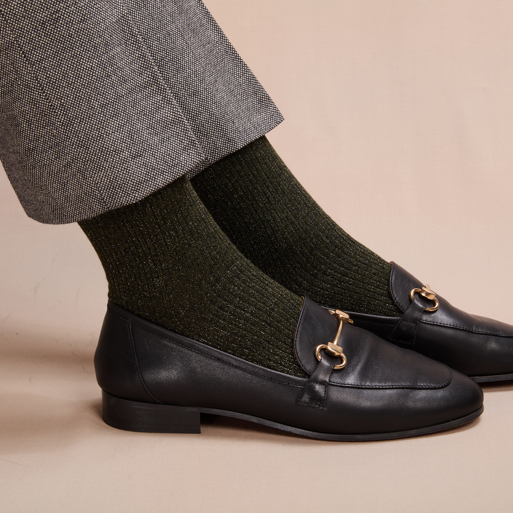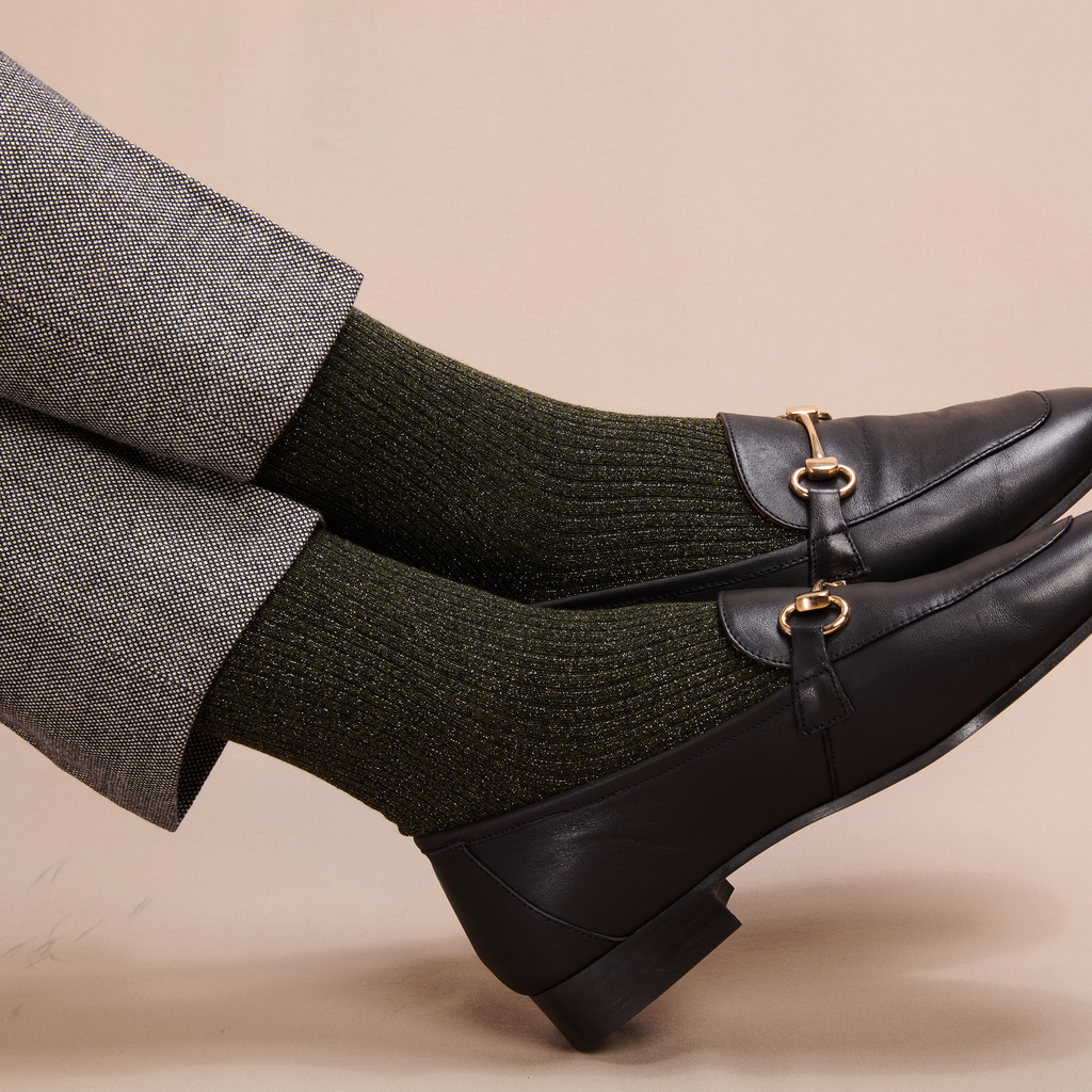 Add a bright touch to your everyday life with these khaki green and black mercerized cotton half-high socks, accented with delicate silver sequins. Refined and distinguished, you can pair them with casual outfits for a casual look, or with more formal outfits to wear them with panache.
