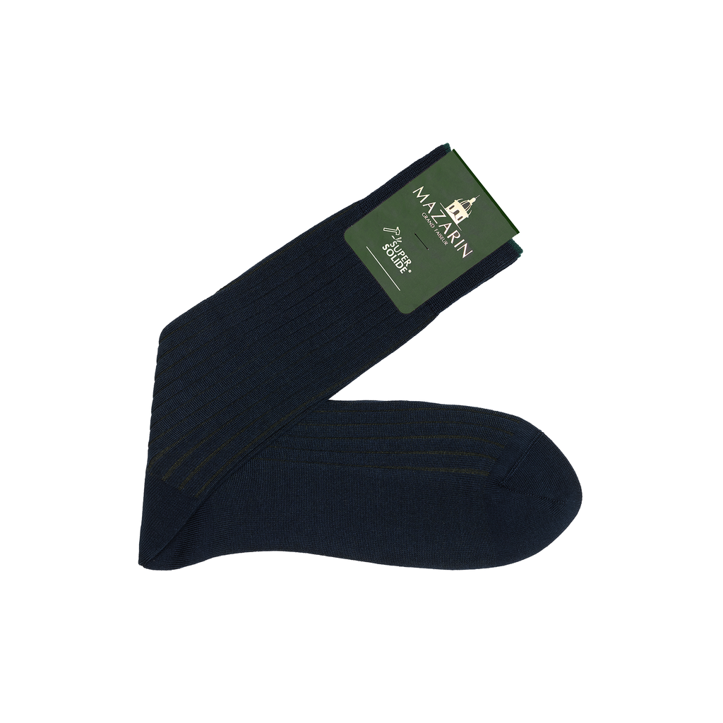 Calcetines de media caña en Hilo de Escocia de la gama Super-Solide, color azul marino con rayas verde kaki, de Mazarin.