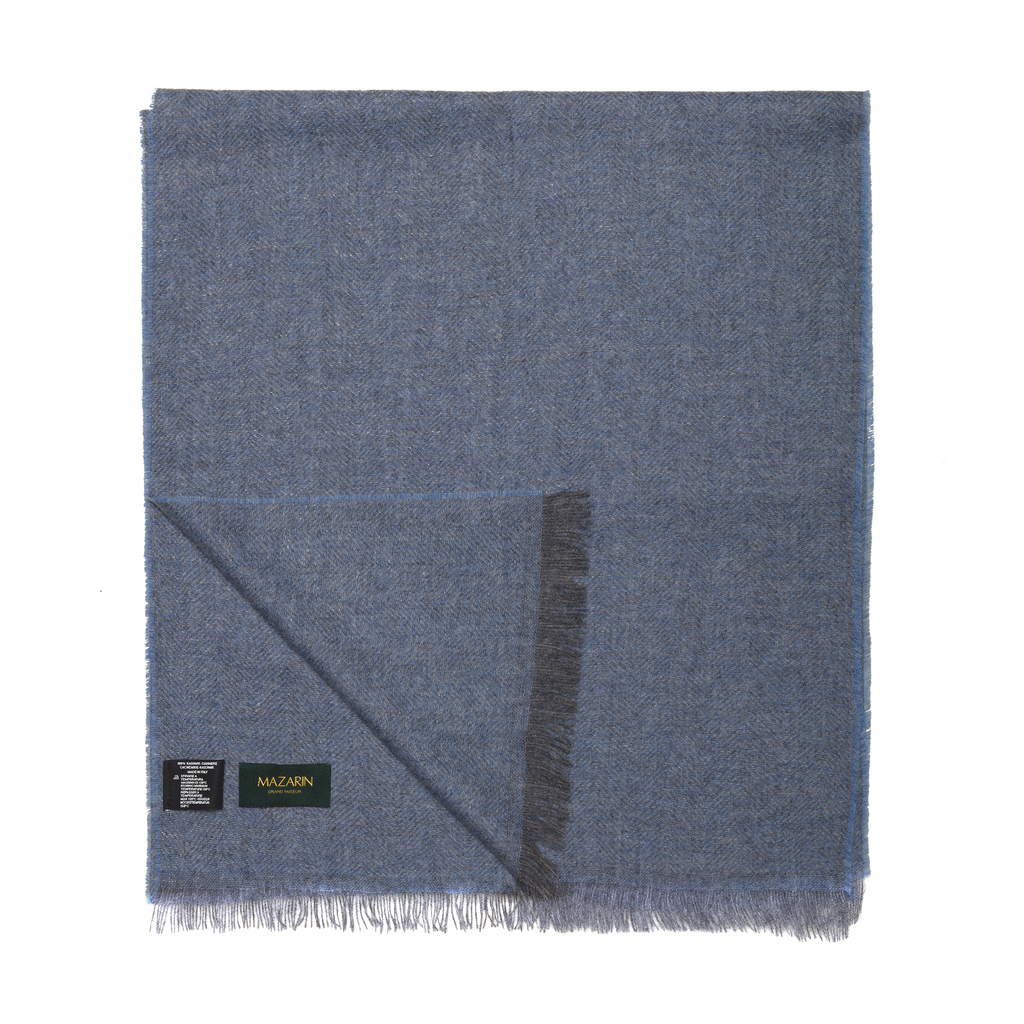 Bufanda Espiga 100% Cachemira - Cielo y Gris