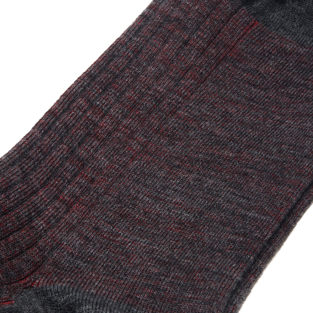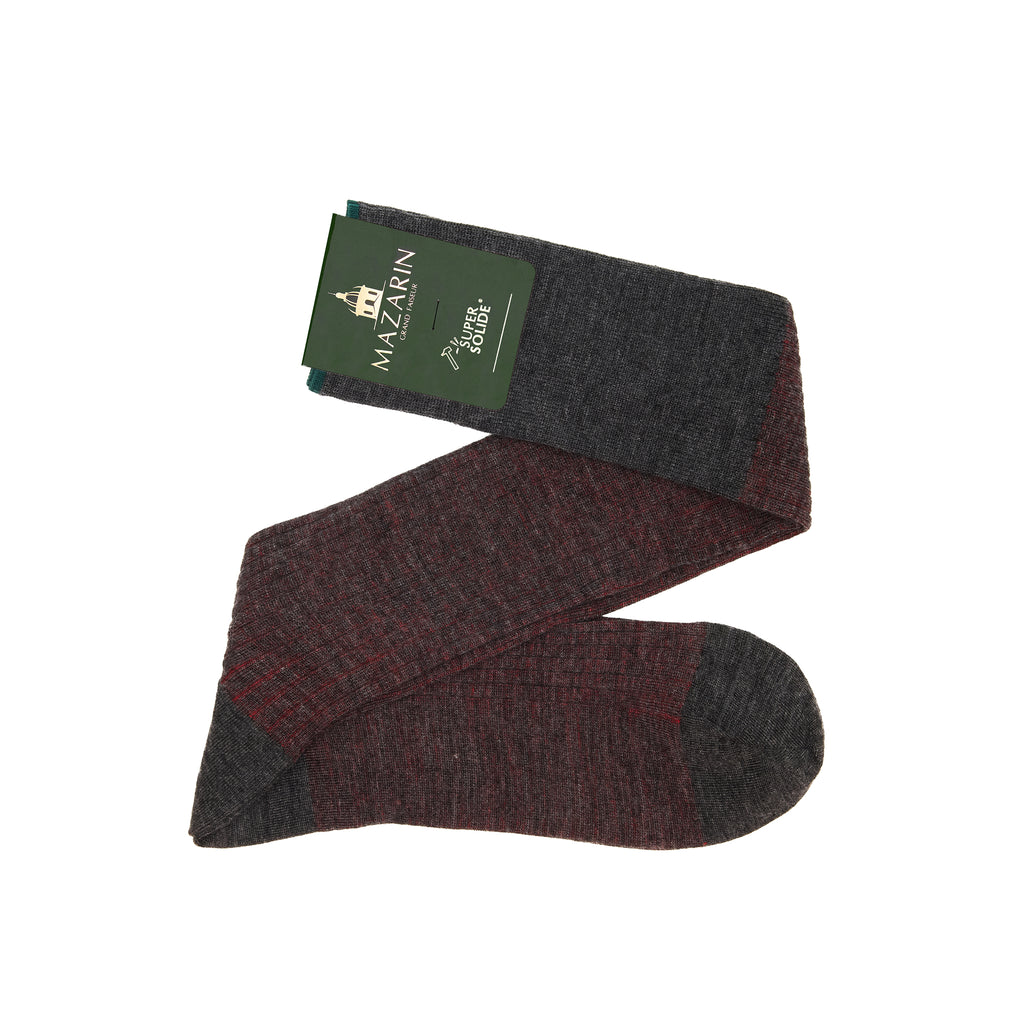 Calcetines altos de lana acanalada gris y roja de Mazarin.