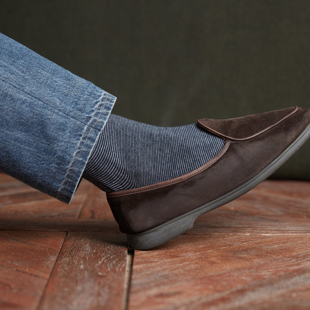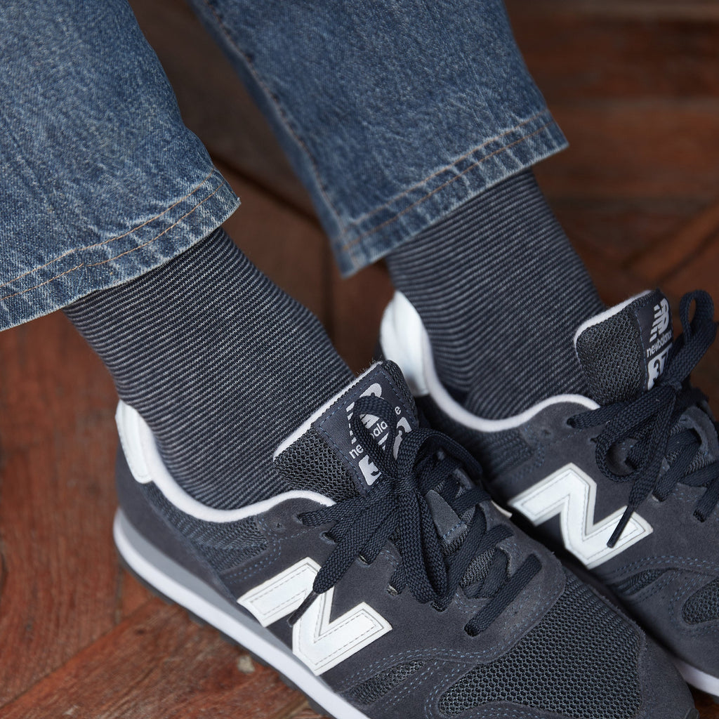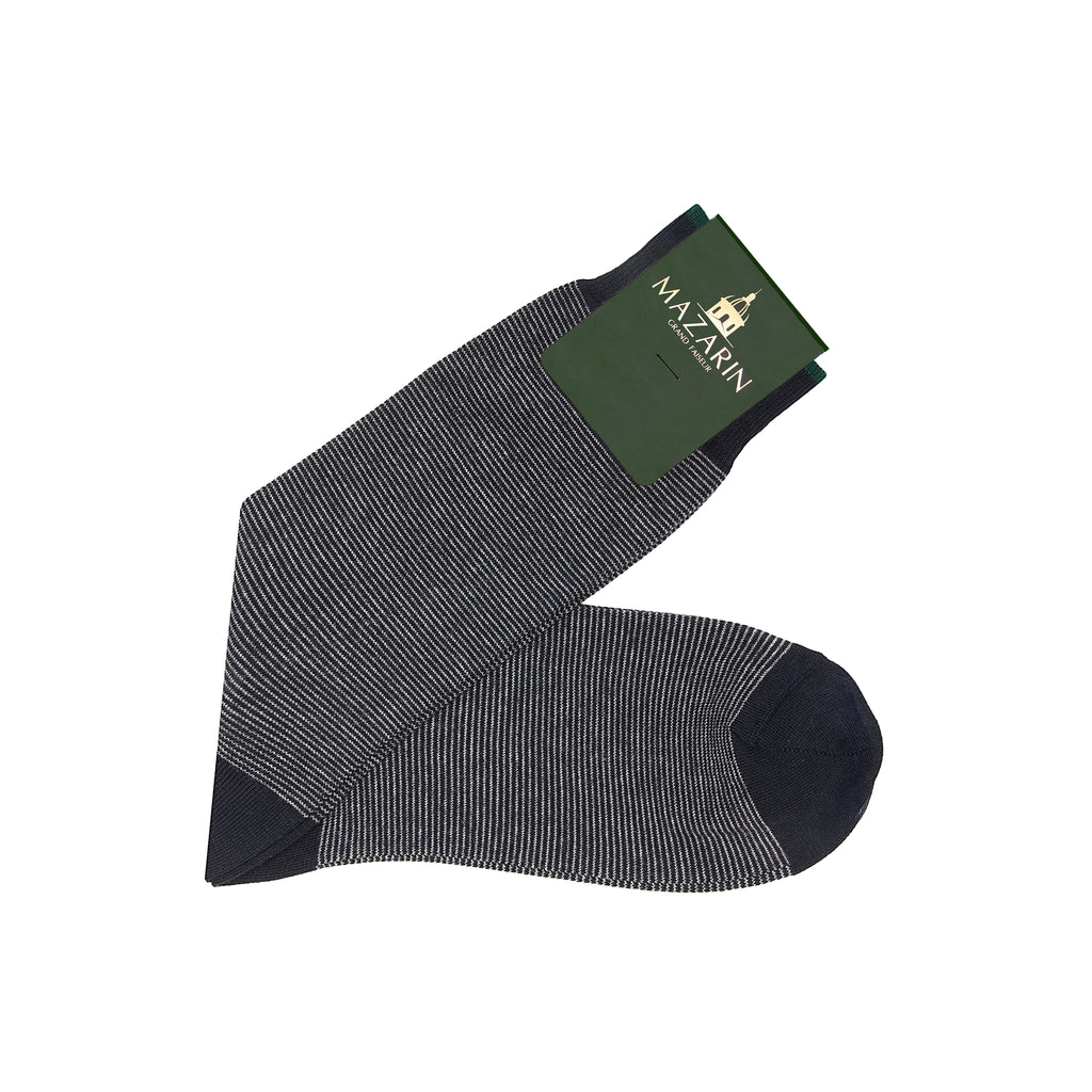 Calcetines cortos de algodón de rayas finas azul marino y gris claro de la gama Portofino de Mazarin.