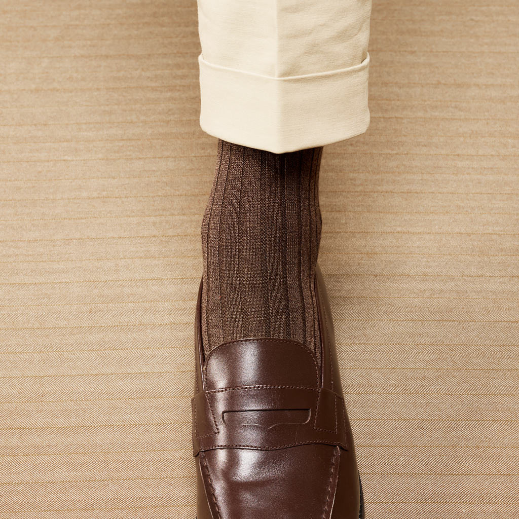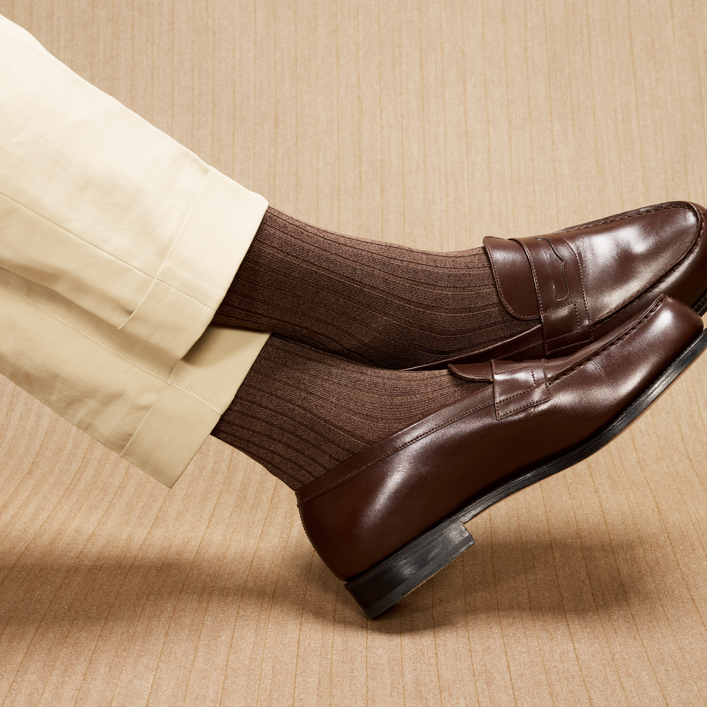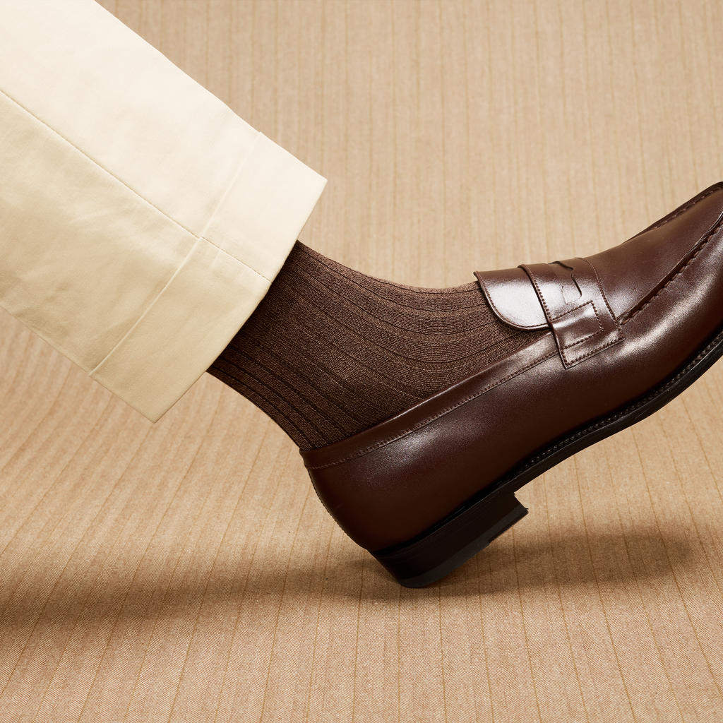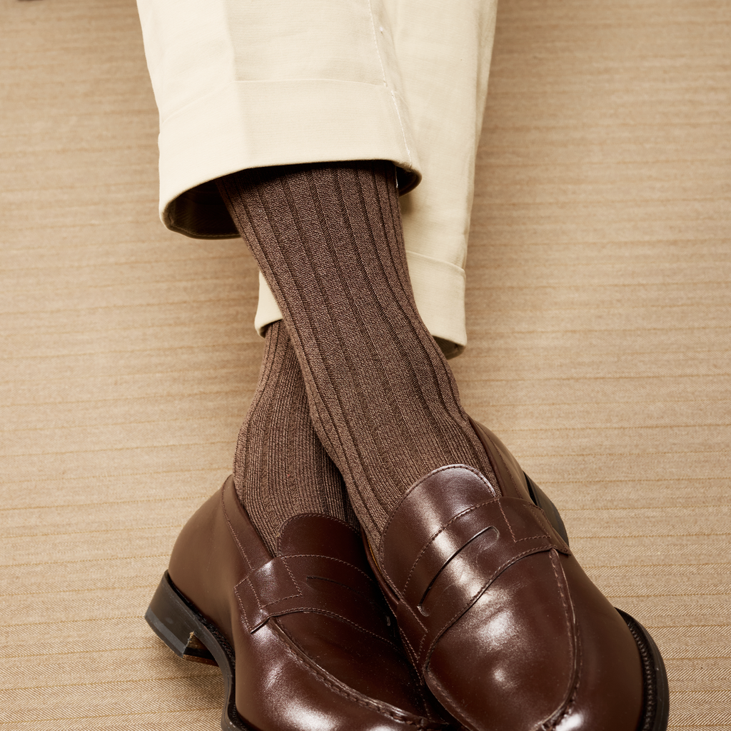Descubra la elegancia atemporal del marrón glaseado con estos calcetines de media pierna en hilo de Escocia super-resistente: un modelo refinado y duradero de Mazarin. Este tono se encuentra entre el marrón oscuro y el medio, ideal para combinar con zapatos marrones en un look tonal o con zapatillas y vaqueros crudos para un estilo más relajado.