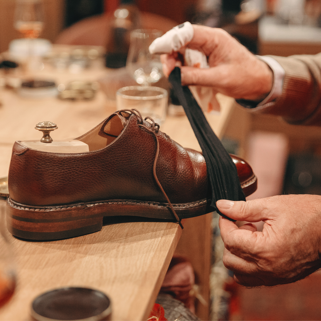 L'atelier commencera par une présentation et une démonstration d'entretien et de glaçage de Quentin Planchenault. Ensuite, chaque participant pourra s'exercer sur ses propres chaussures et demander conseil à tout moment. Un apéritif est proposé tout au long de l'atelier.