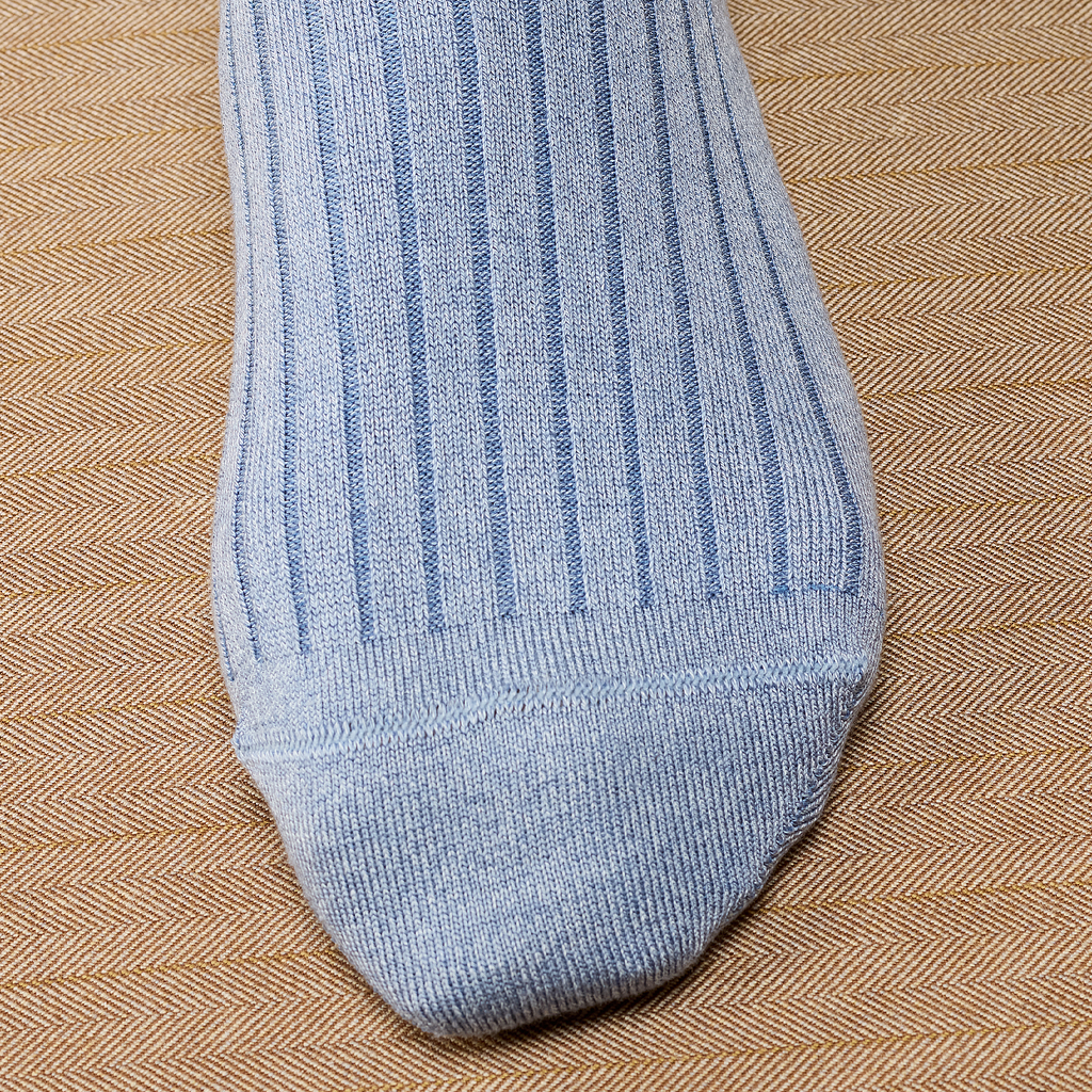 マザランの霜降りライトブルーの超耐久コットンリスル製ミドルソックス。