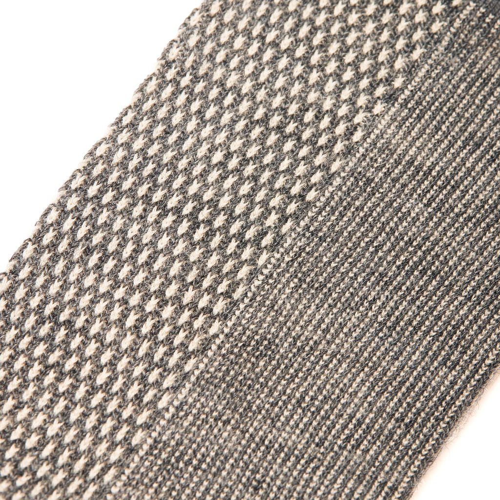 ミディアムグレーとクリームを使用した、キャビア柄のミッドカーフソックスです。独創的でありながら落ち着いたこのソックスは、トーン・オン・トーンに合わせたり、ダークトーンとのコントラストを楽しむのに最適です。