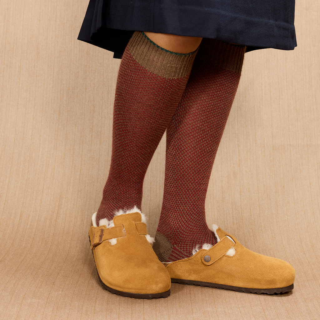Pensées pour affronter l’hiver avec style, ces chaussettes hautes pour femme de la gamme Bison associent une laine mérinos épaisse à un élégant motif caviar taupe et rouge. Cette combinaison subtile apporte du relief et une touche de caractère tout en restant facile à assortir à des tenues hivernales décontractées.