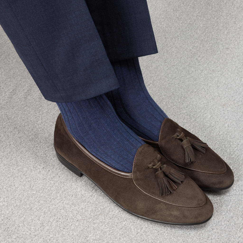 Avantages : elles ont plus de tenue et couvrent le tibia en entier. Leur hauteur est adaptée pour être portée avec des pantalons de costume.