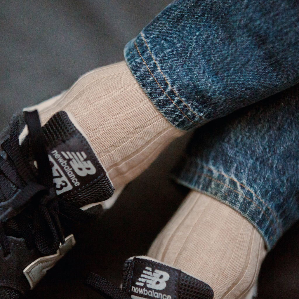Après les mi-bas super-solides en laine, voici leurs petites soeurs en version courte, qui arrivent à mi-mollet ! Un très beau beige proche du blanc cassé ajoute à la douceur de la matière, la douceur de sa couleur. Celle-ci s'assortit avec tous les bleus et les marron.