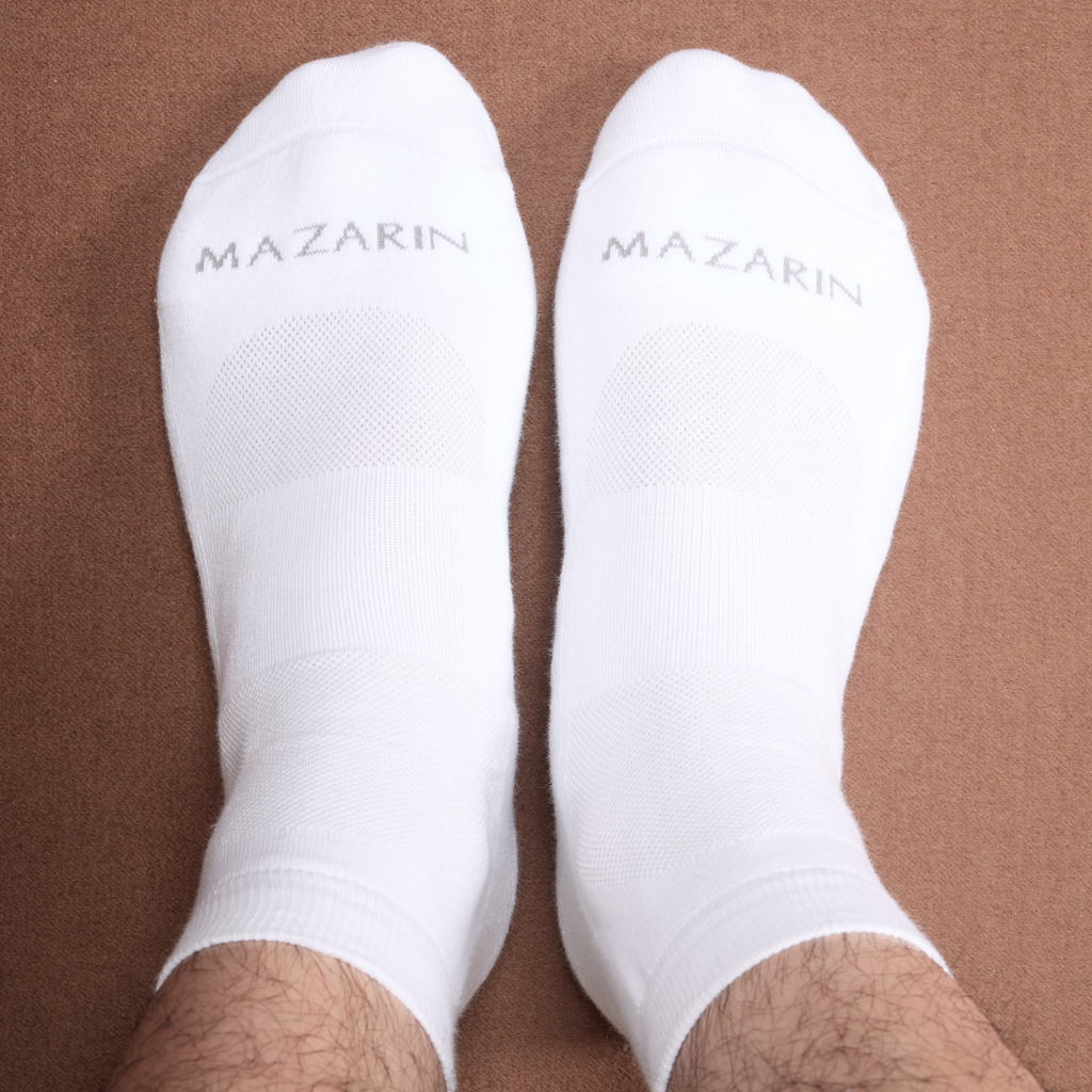 Chaussettes de sport très courtes en coton renforcé, de couleur blanche, par Mazarin.