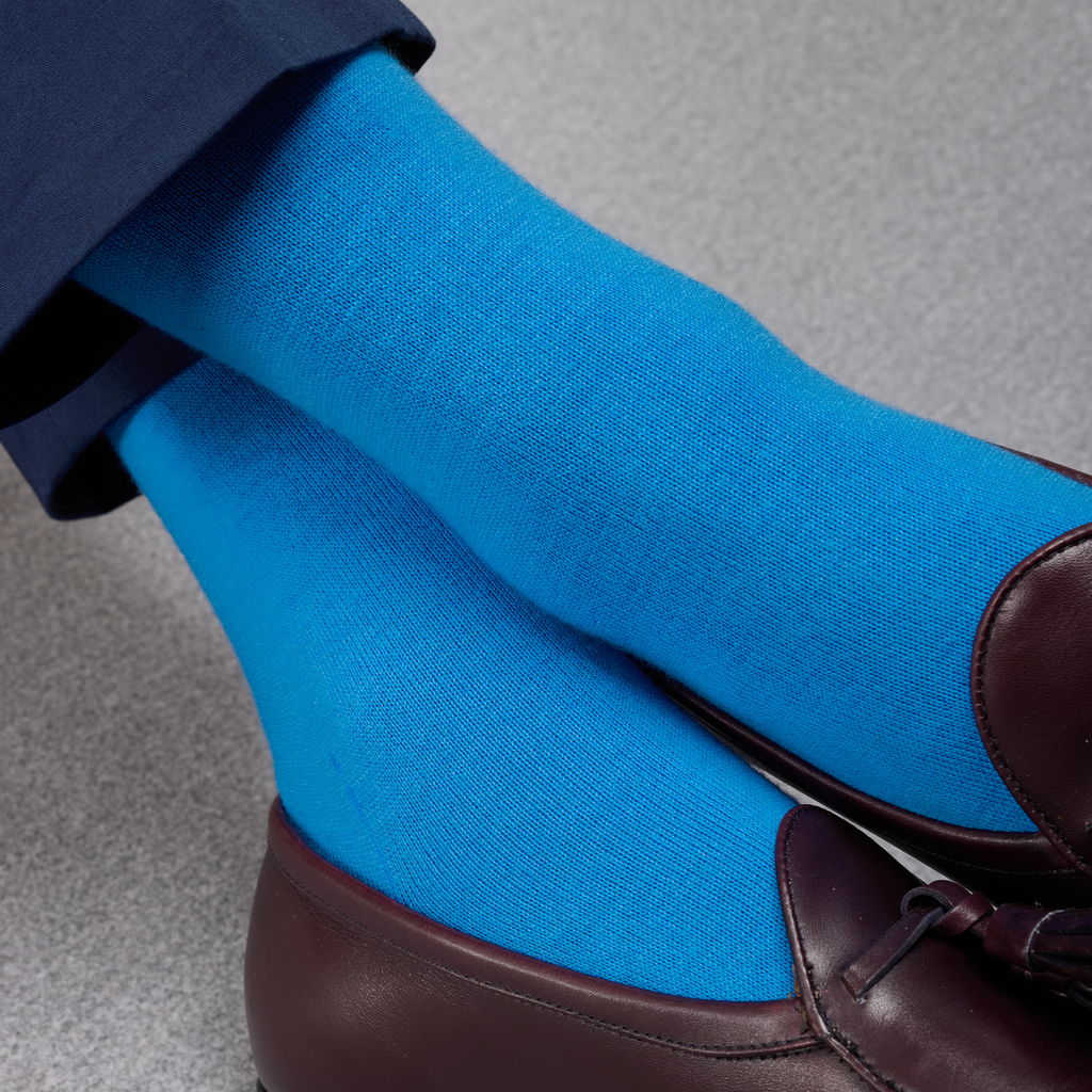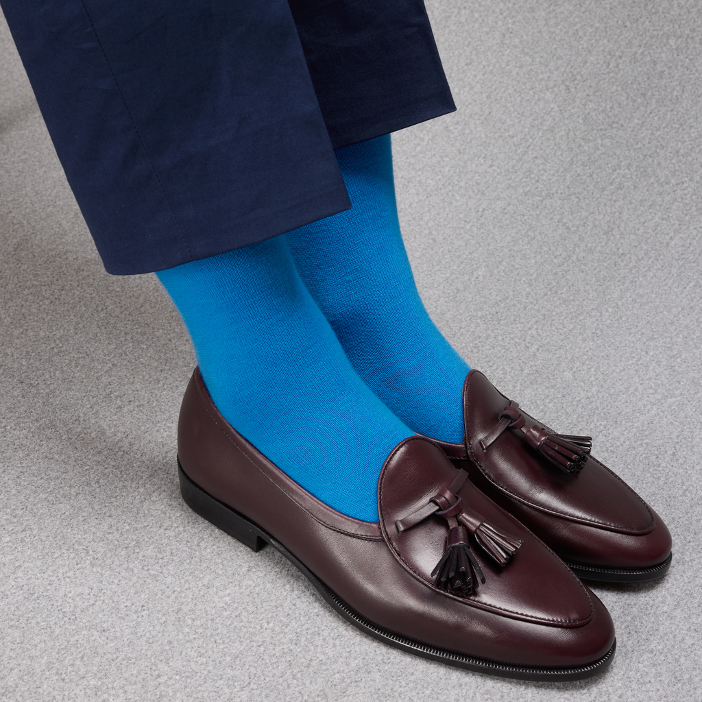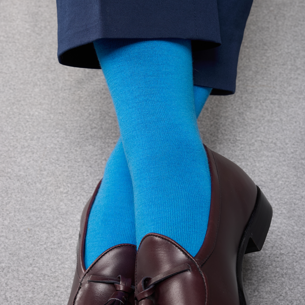 Ces chaussettes originales en laine et cachemire illumineront vos tenues par leur bleu ciel éclatant ! Cette couleur s'accorde parfaitement à des tons clairs pour une tenue décontractée et vive, ou avec des tons sombres pour casser la monotonie de l'ensemble.