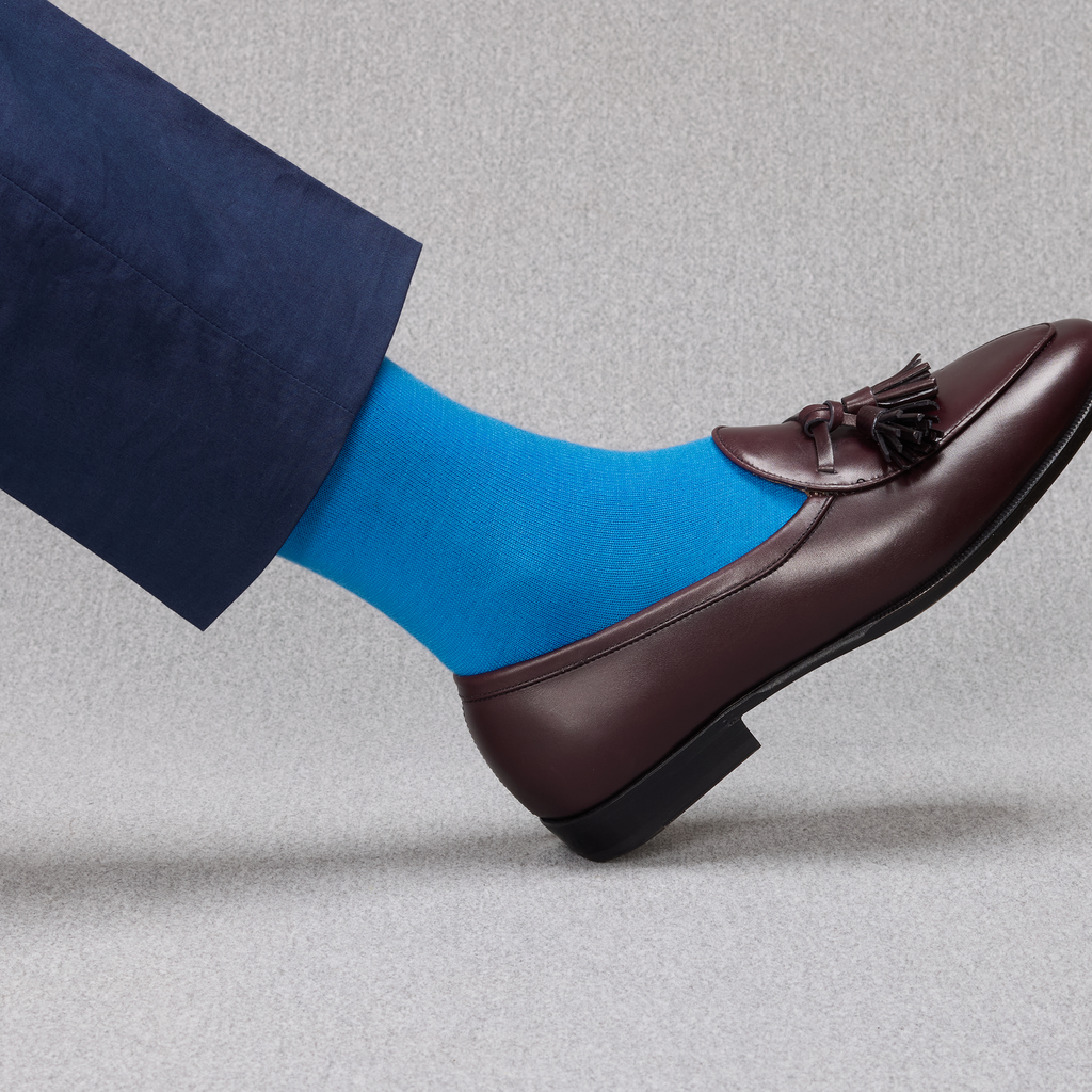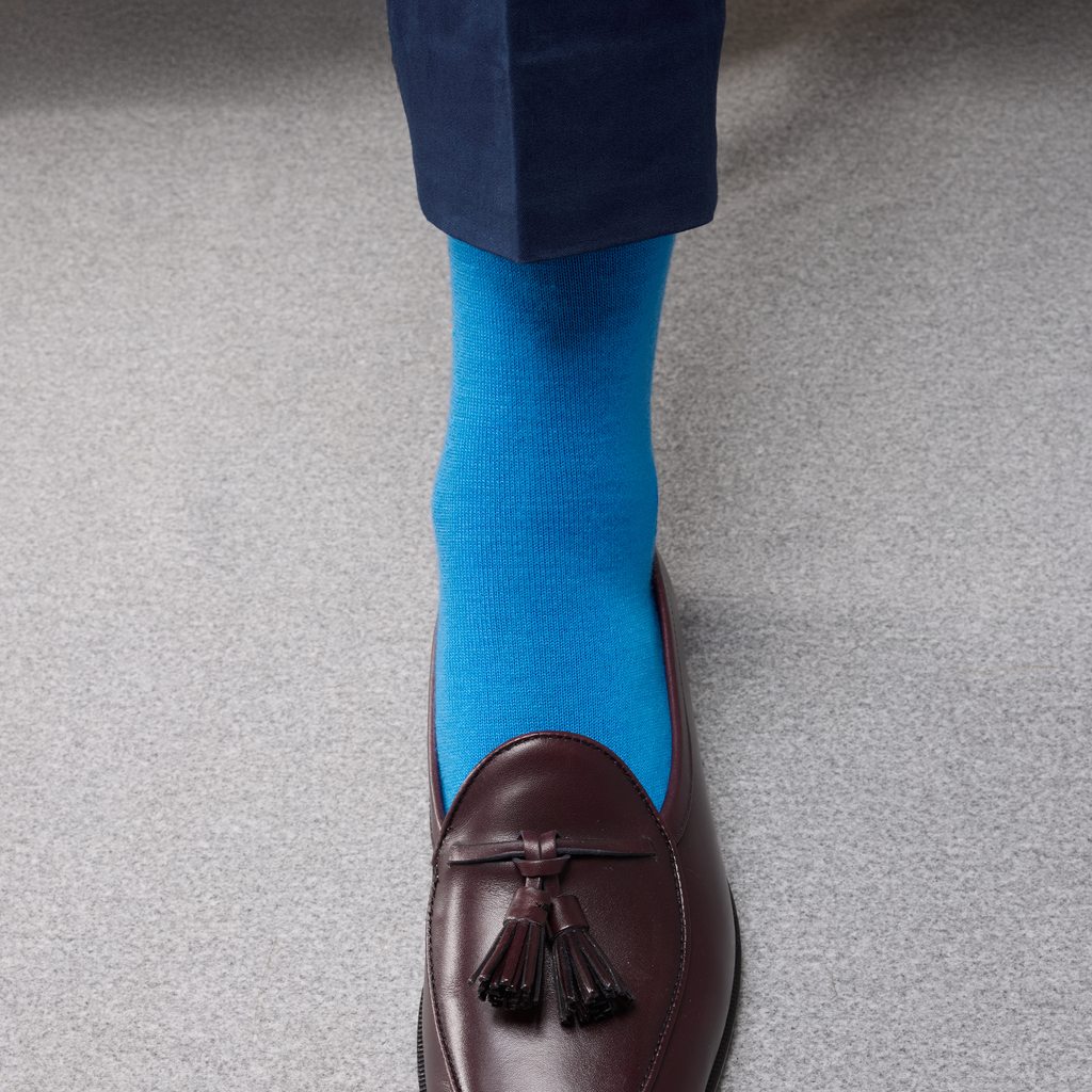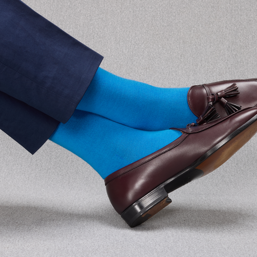 Ces chaussettes originales en laine et cachemire illumineront vos tenues par leur bleu ciel éclatant ! Cette couleur s'accorde parfaitement à des tons clairs pour une tenue décontractée et vive, ou avec des tons sombres pour casser la monotonie de l'ensemble.