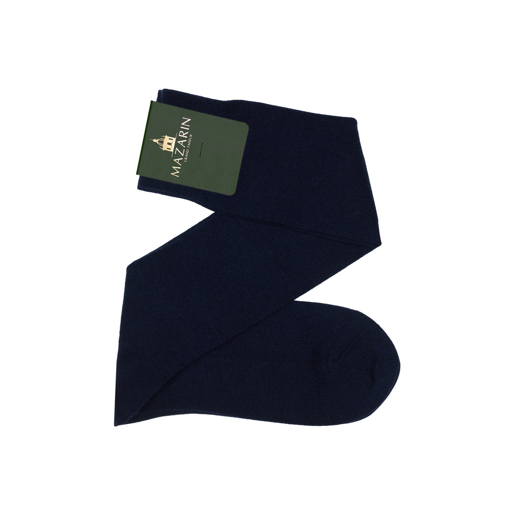 Chaussettes hautes pour femme, en laine et en cachemire de couleur bleu marine, de la marque Mazarin.