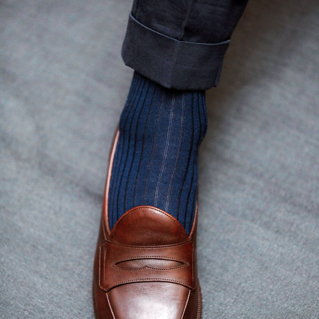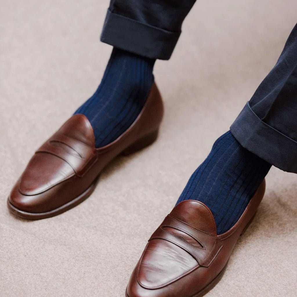 Leur couleur bleu nuit s'accorde facilement avec des tenues et souliers ton-sur-ton ou relève les couleurs de vos tenues en jouant sur les contrastes (marron, beige, noir, gris). Bref, la paire idéale à ajouter à votre collection de chaussettes à porter au quotidien en hiver !