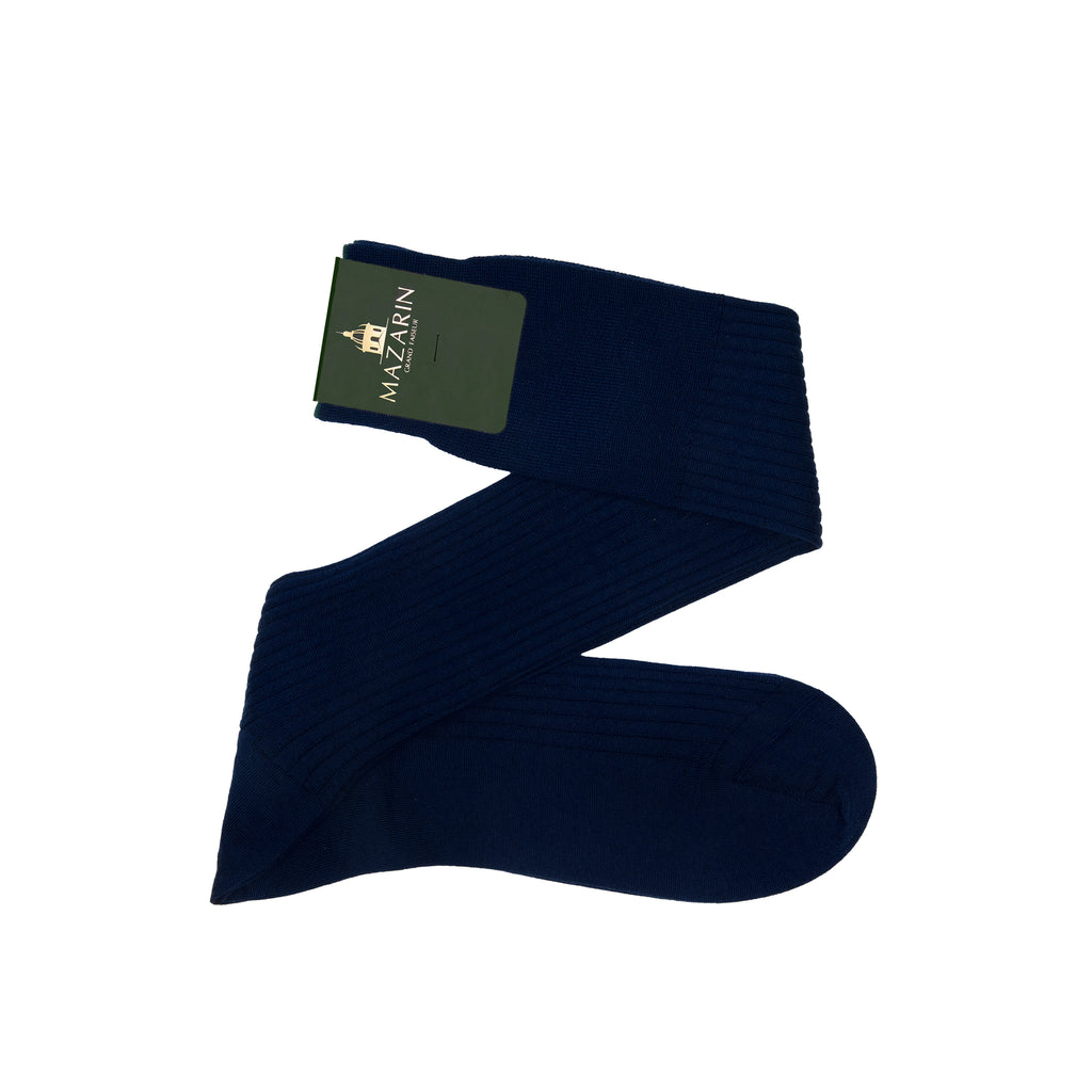 Cette paire de mi-bas (sous le genou) Mazarin en cachemire & soie bleu nuit est d'une douceur et d'une élégance sans pareille. Le touché soyeux du cachemire et sa douceur associés à la légèreté et la brillance de la soie en font le must-have des chaussettes d'hiver. Chaudes mais pas trop épaisses, elles sont parfaites pour aller avec tous vos souliers, mêmes les plus étroits.